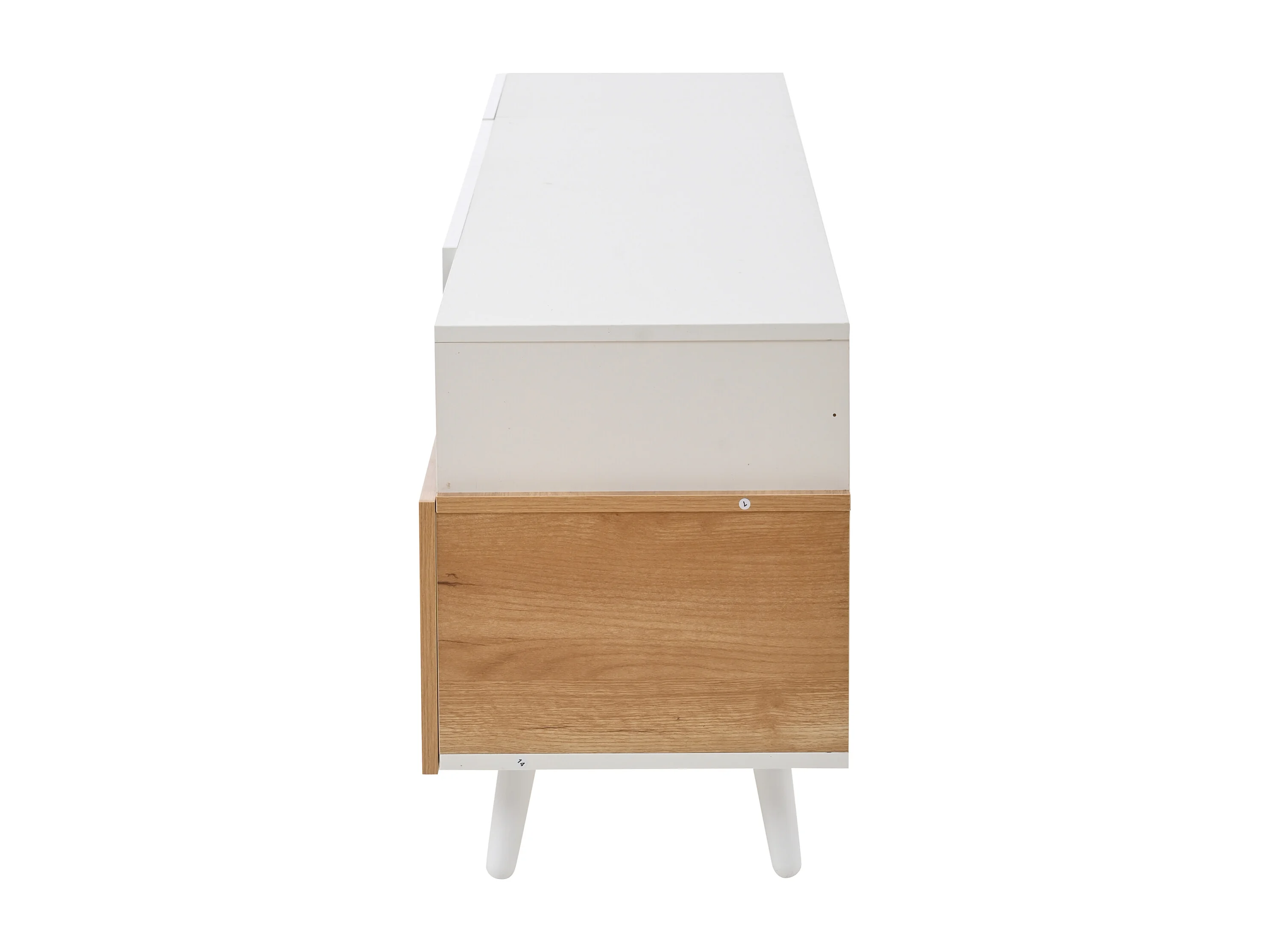 Meuble TV blanc 180x38x50 cm avec 2 portes et 1 tiroir de rangement - pieds en bois -
