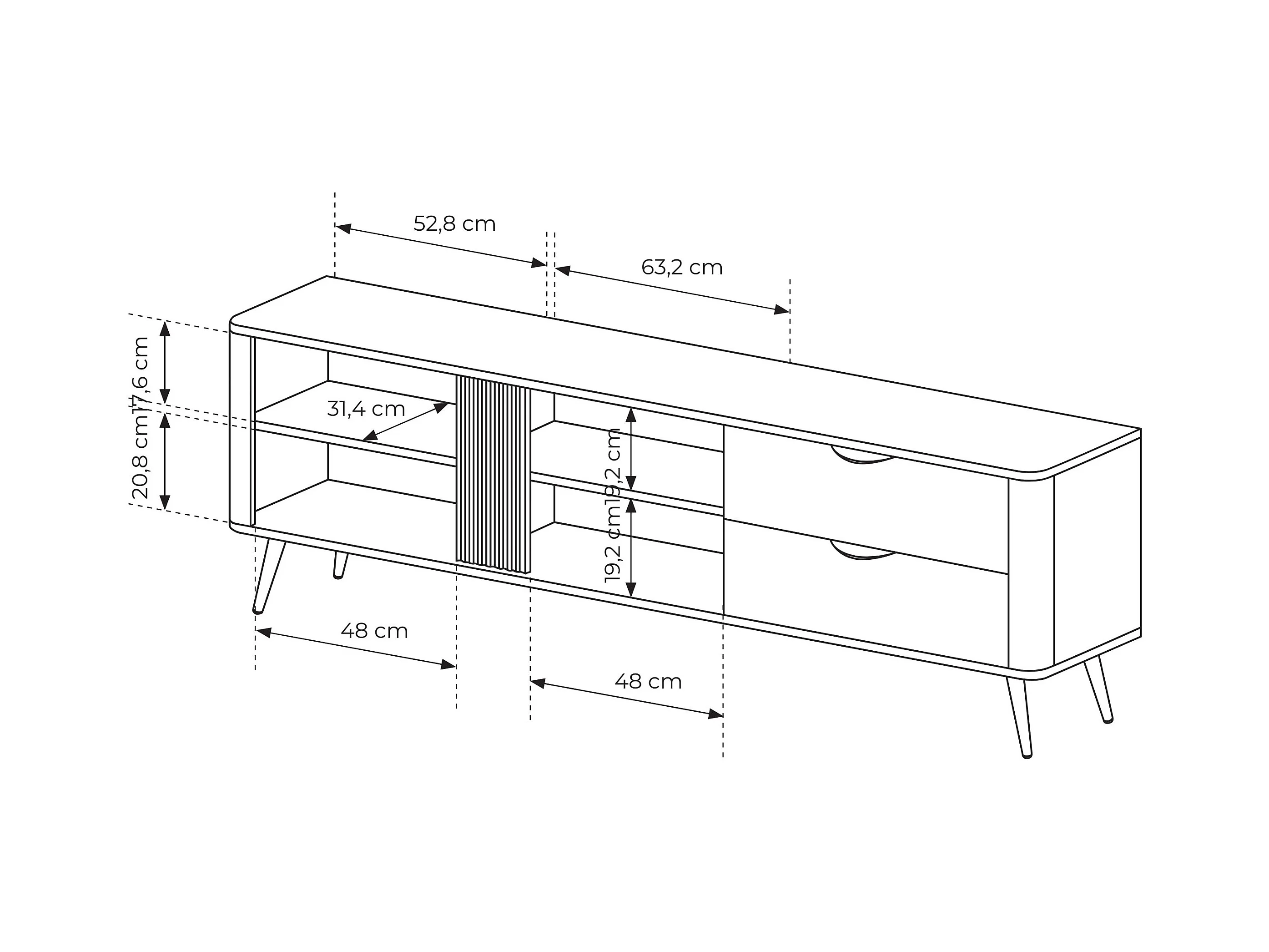 Meuble TV 200 (2 x 100) cm Chêne Craft, 200 x 32 x 52 cm