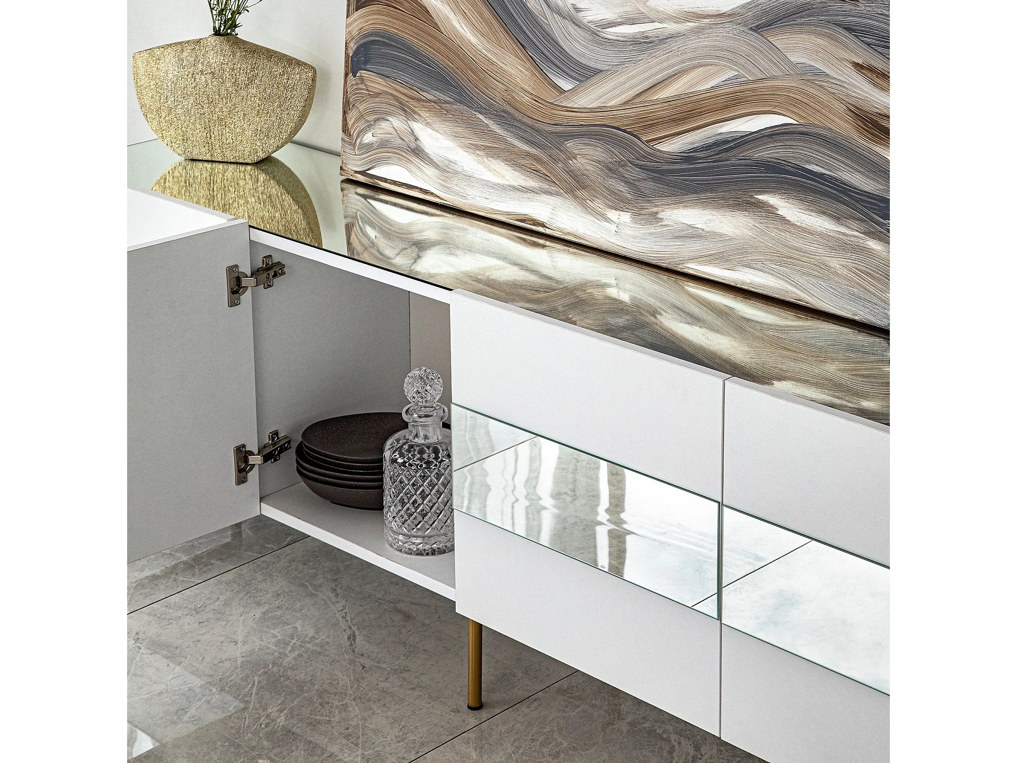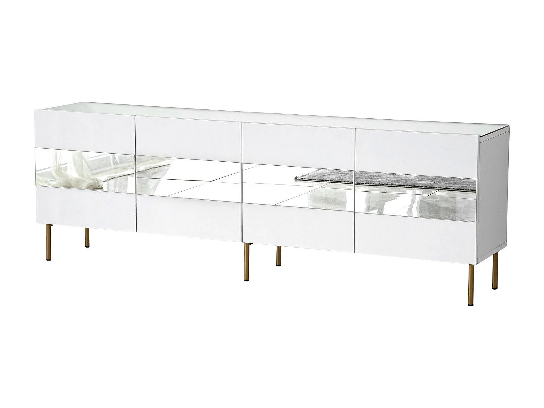 Meuble TV élégant, largeur 180 cm, blanc et argent | Panneau de particules 100 % mélaminé, épaisseur 18 mm | Design moderne pour salons et espaces de divertissement