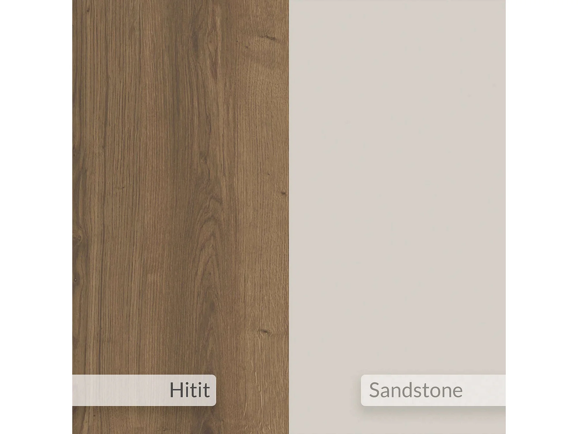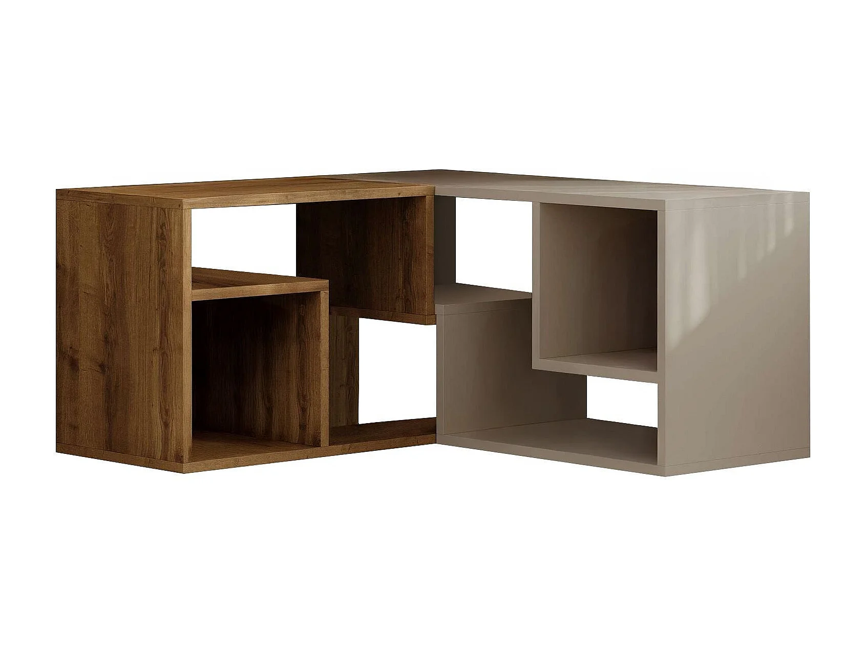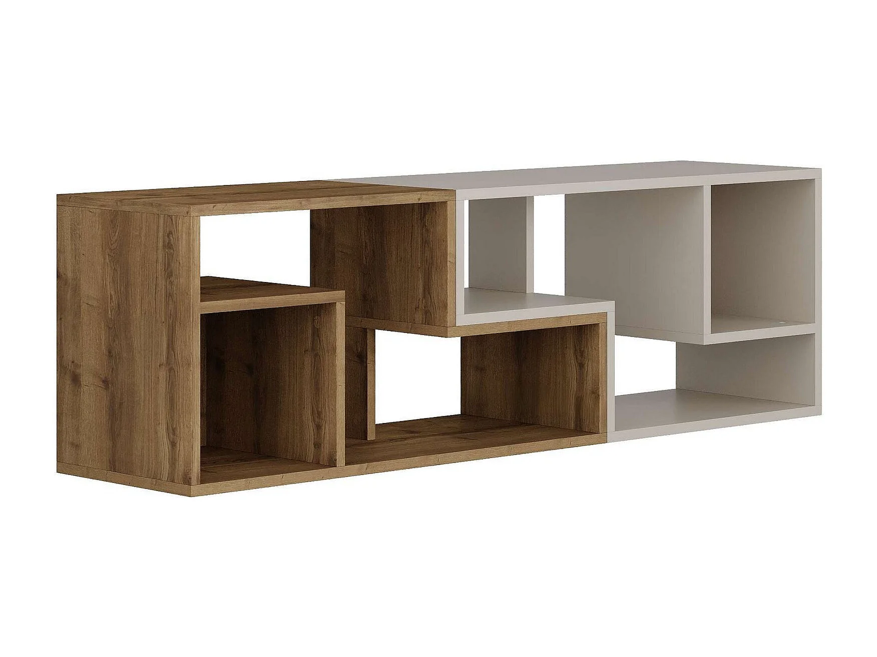 Meuble TV avec étagère murale – 180 cm – Noyer et Travertin – Panneau de particules mélaminé