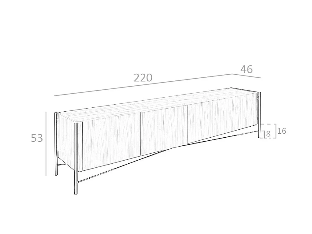 Meuble TV en noyer et acier chromé 3222 ANGEL CERDA