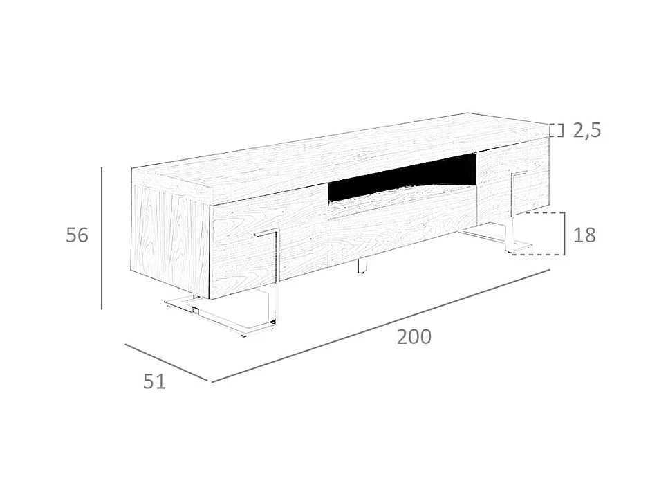 Meuble TV de noyer et acier chromé 3222 ANGEL CERDA