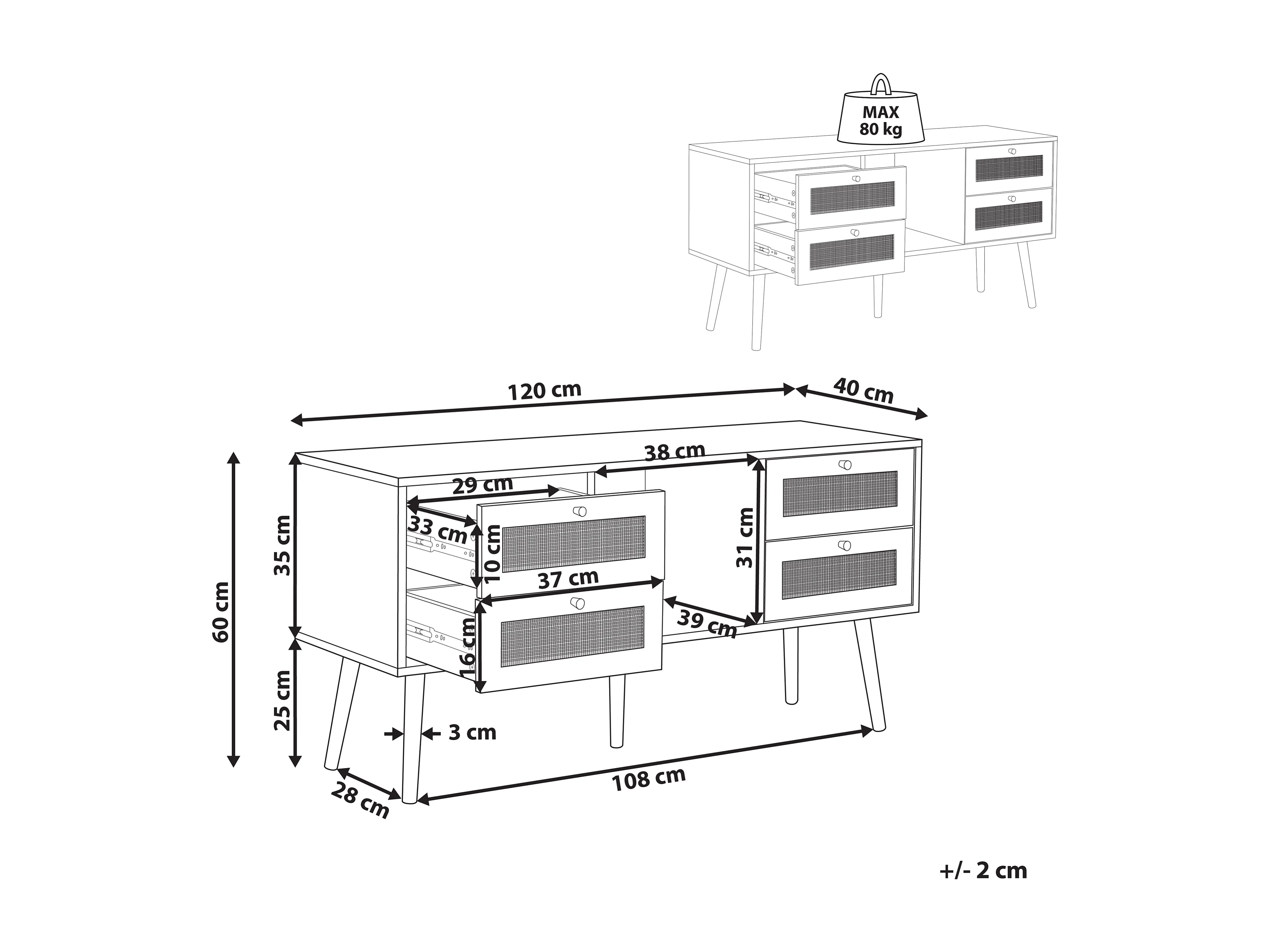 Meuble TV PEROTE Rotin Marron clair
