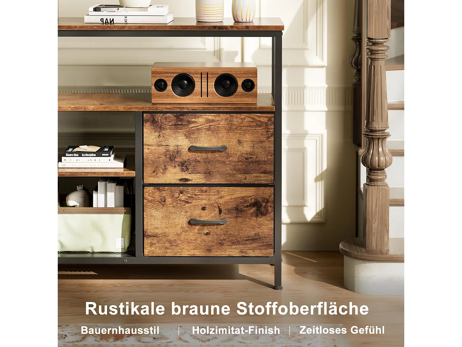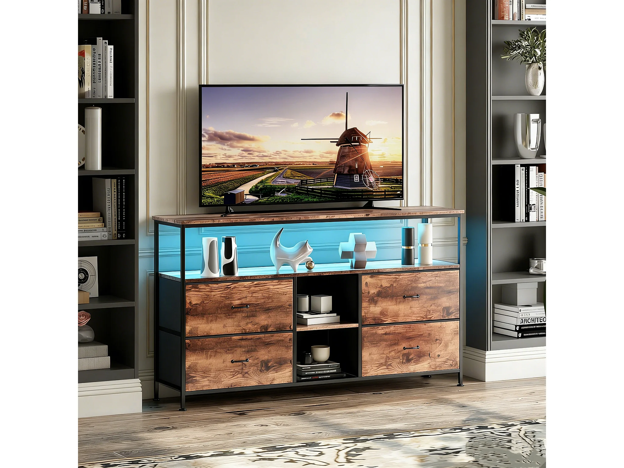 Meuble TV LED avec 4 Tiroirs - Petit Meuble Tele avec Rangement - Marron Rustique - Commode en Tissu pour Le Salon Chambre à Coucher Entrée