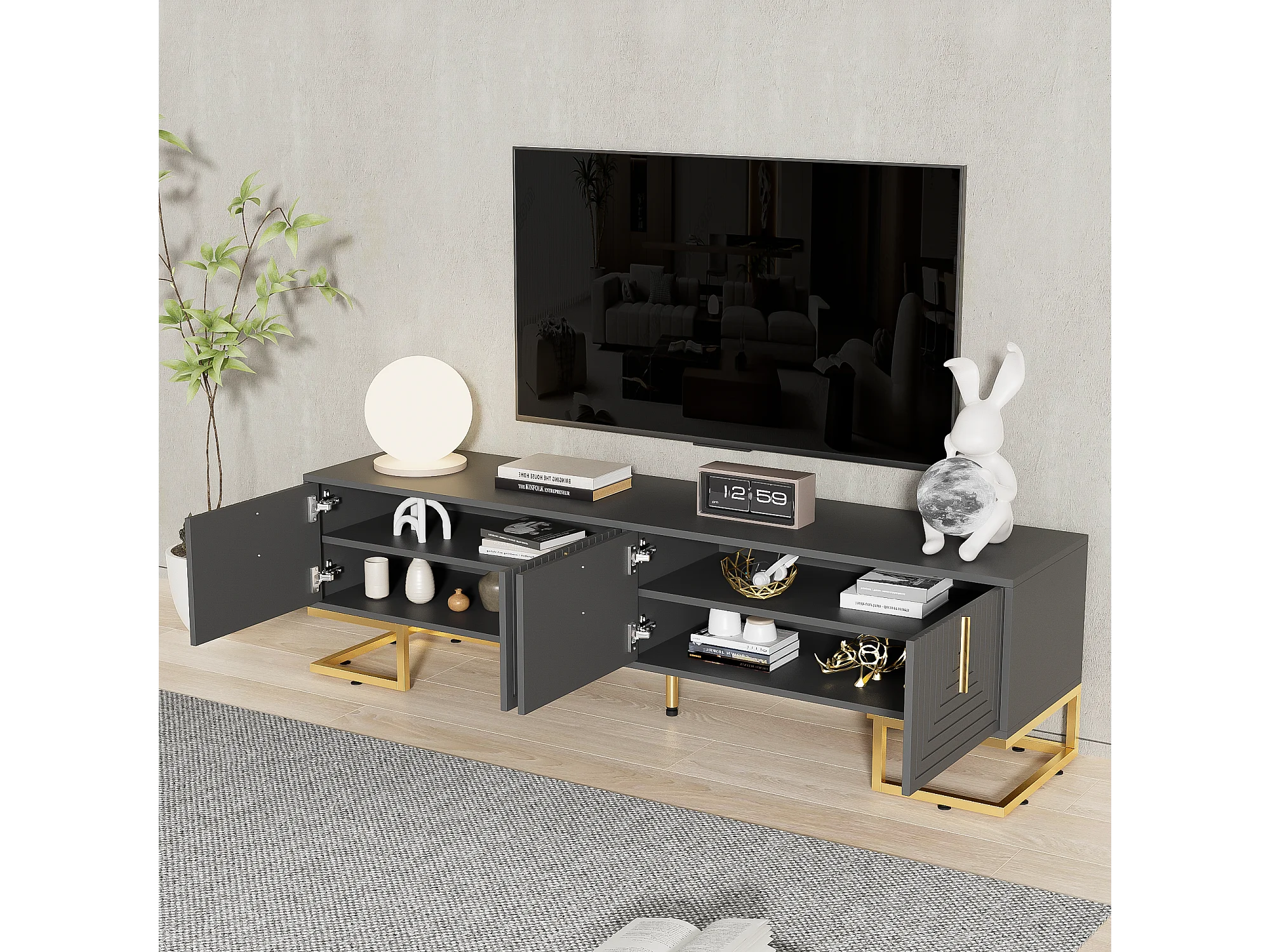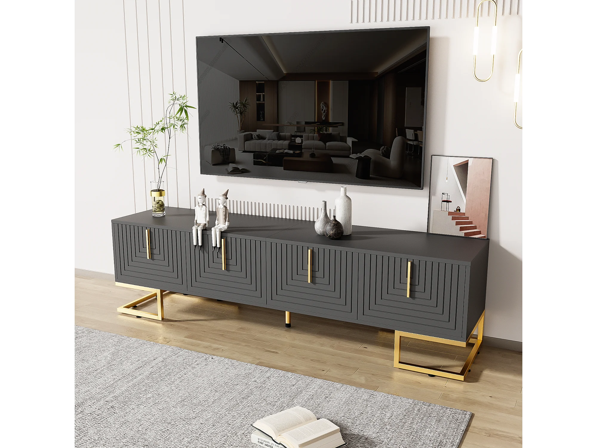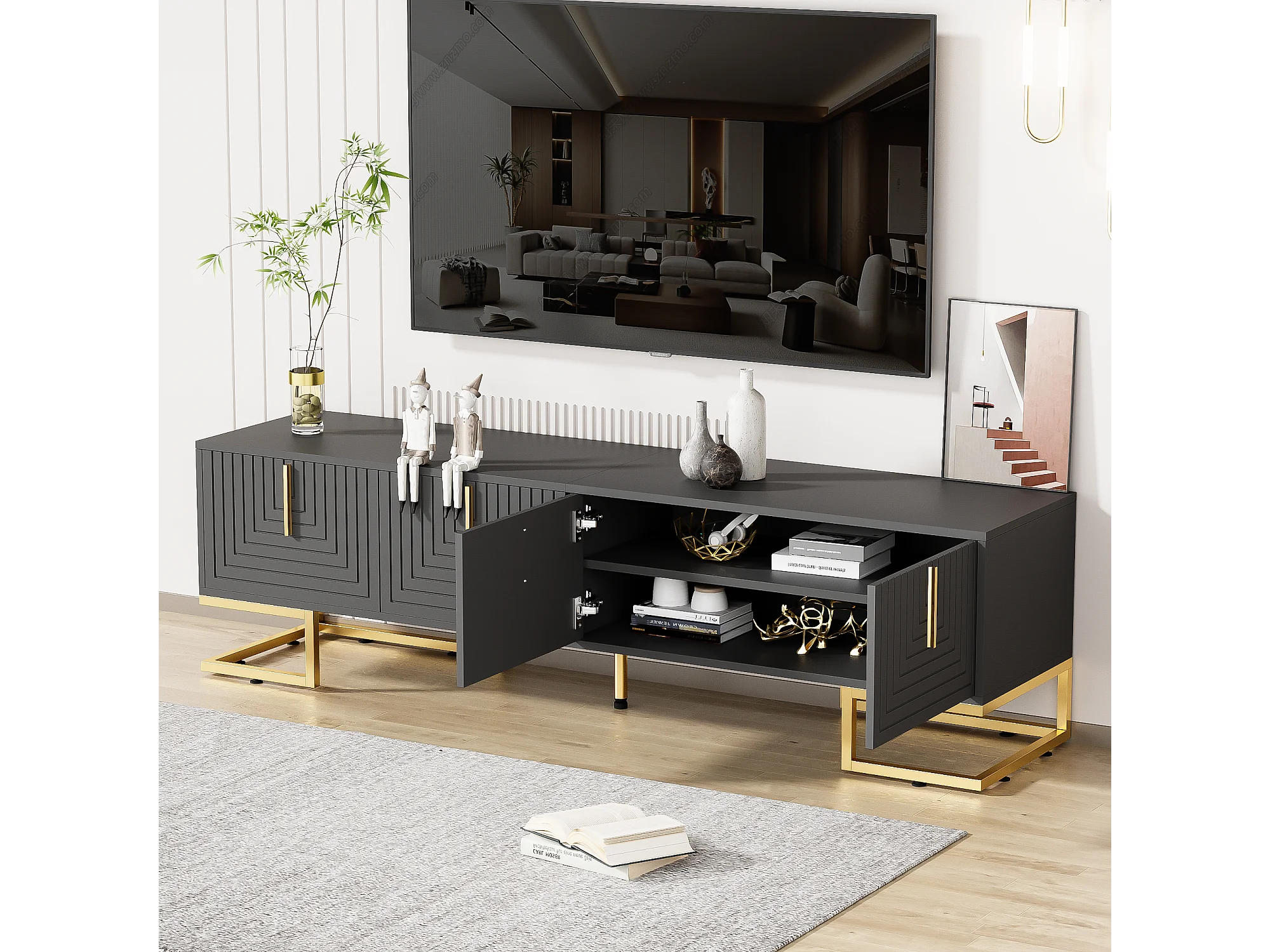 Meuble TV, Lowboard avec Porte Structurée, Poignées et Pieds Dorés