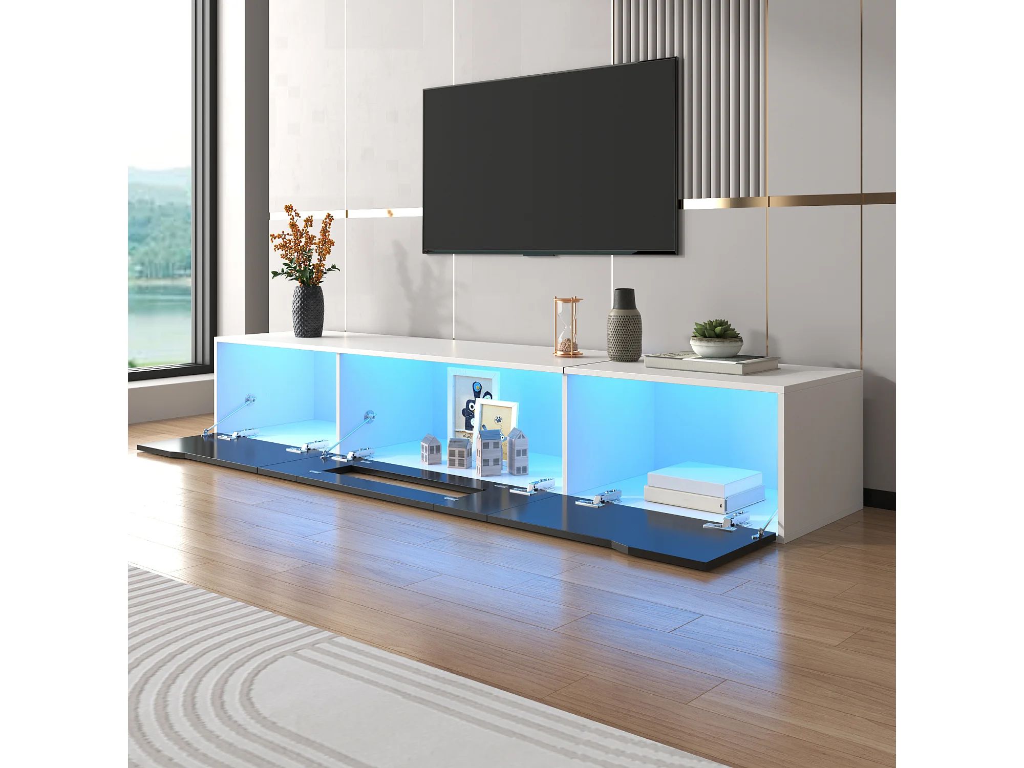 Meuble TV, Meuble TV Brillant, Assorti Noir et Blanc, avec Éclairage LED Multicolore