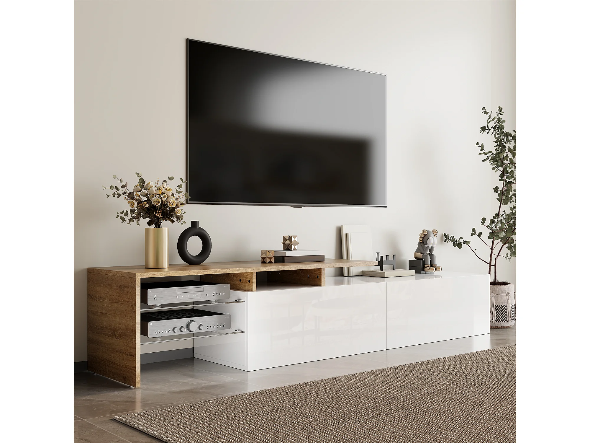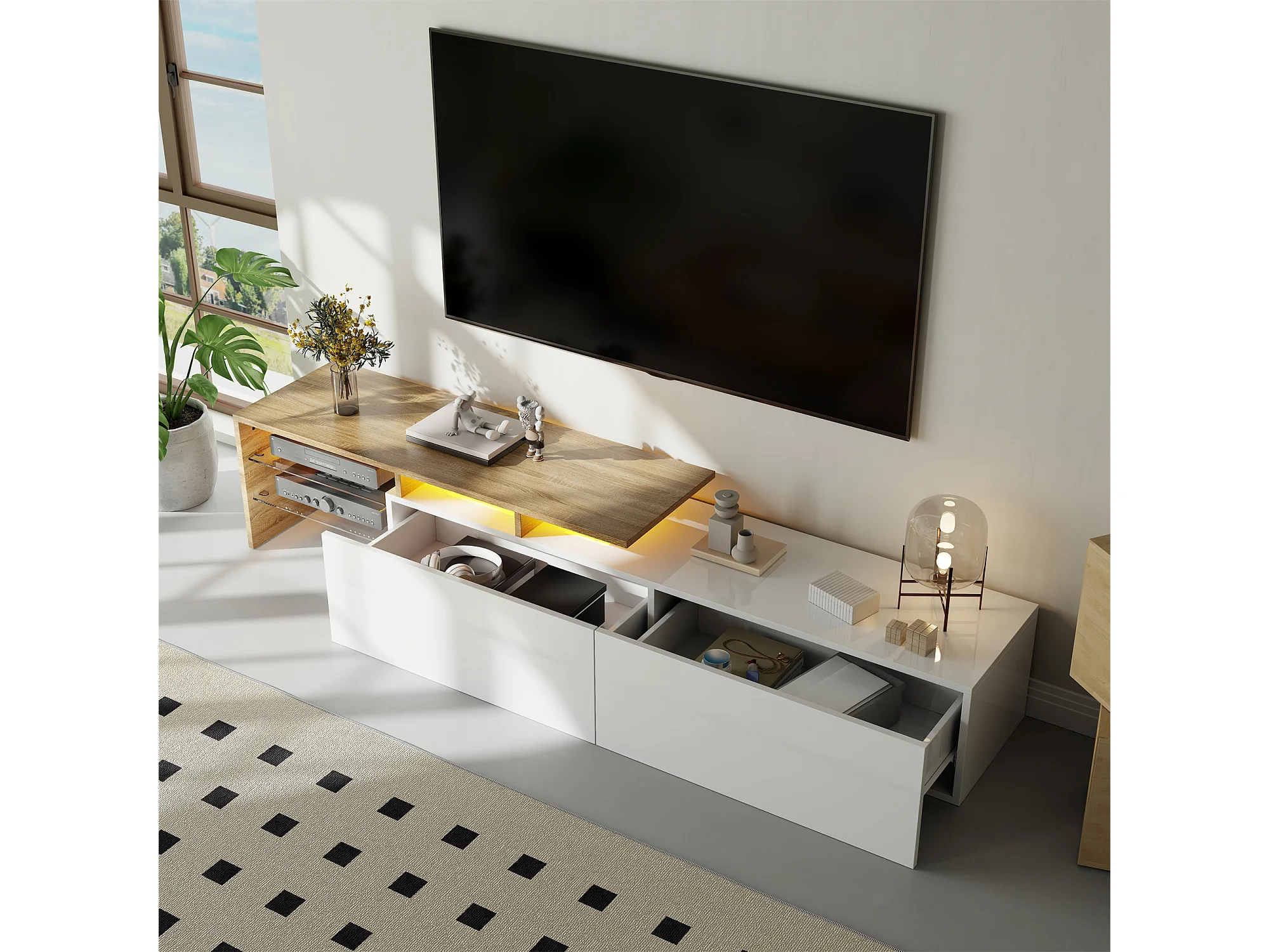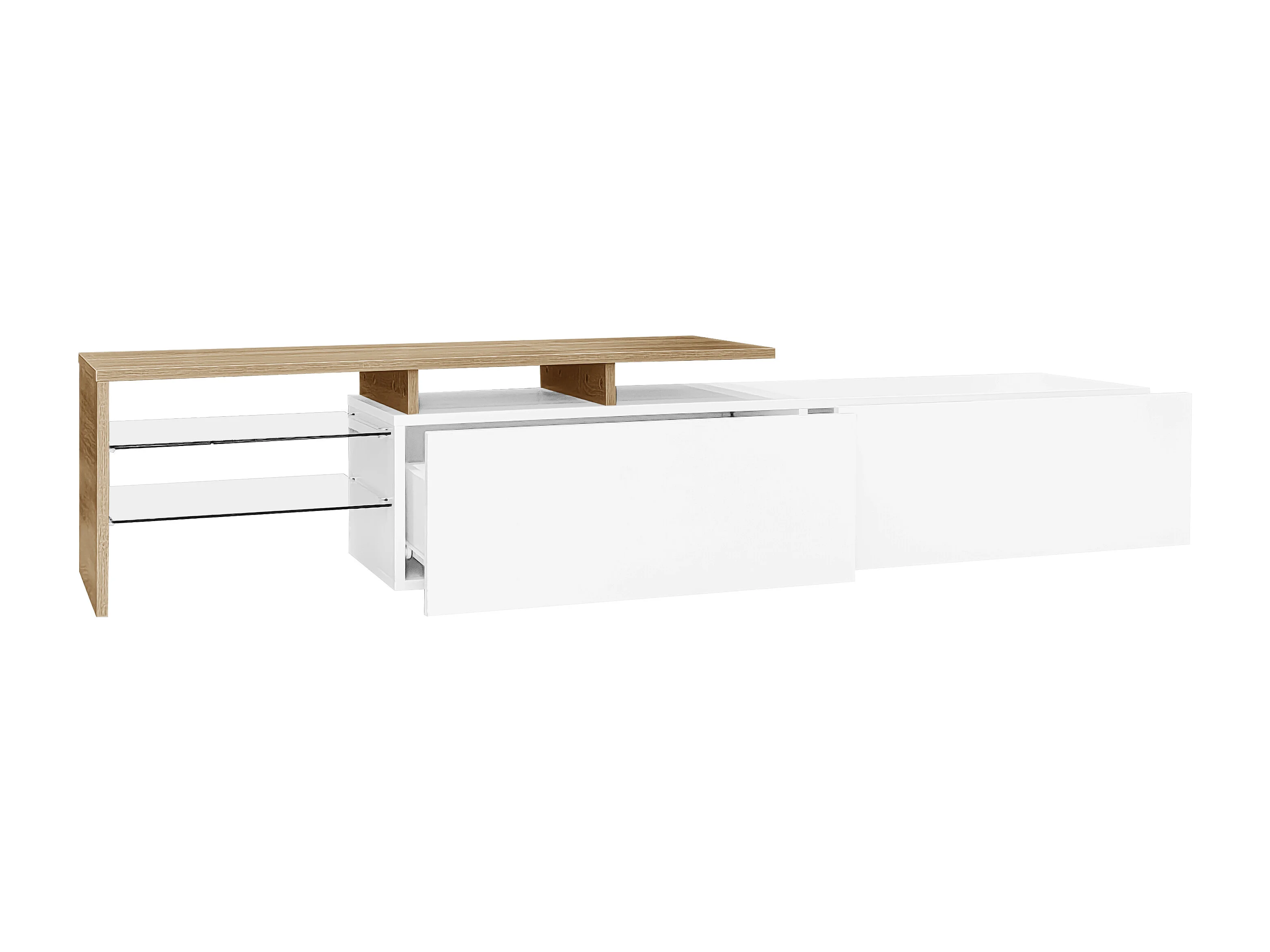 Meuble TV - Rangement Avec Bande LED 16 Couleurs Et Étagères En Verre - 170 x 33 x 33,5 cm En Panneau De Particules - Blanc+Naturel