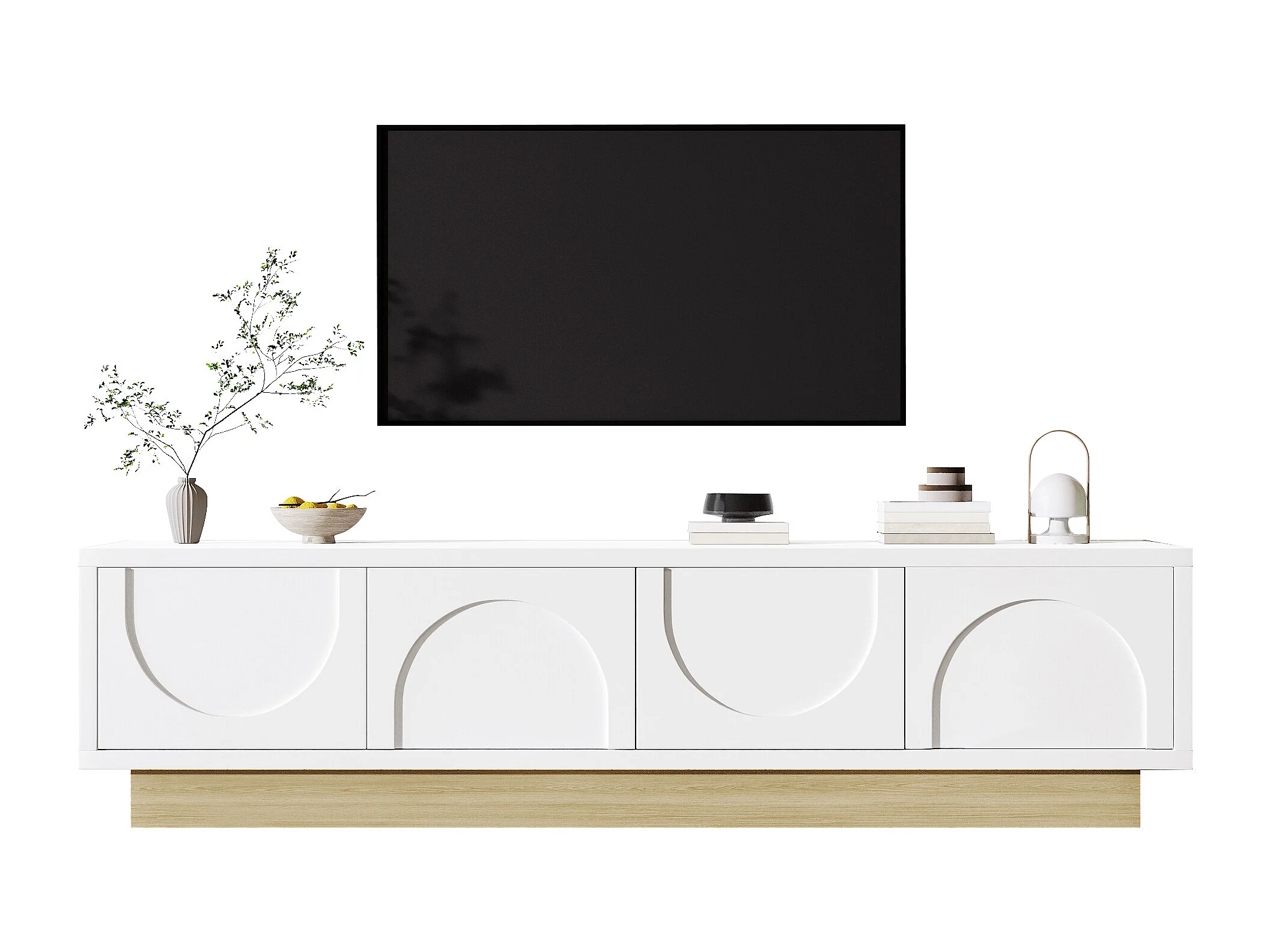 Meuble TV moderne - 175 x 40 x 42 cm - Design incurvé minimaliste - avec 4 portes - MDF + aggloméré - blanc