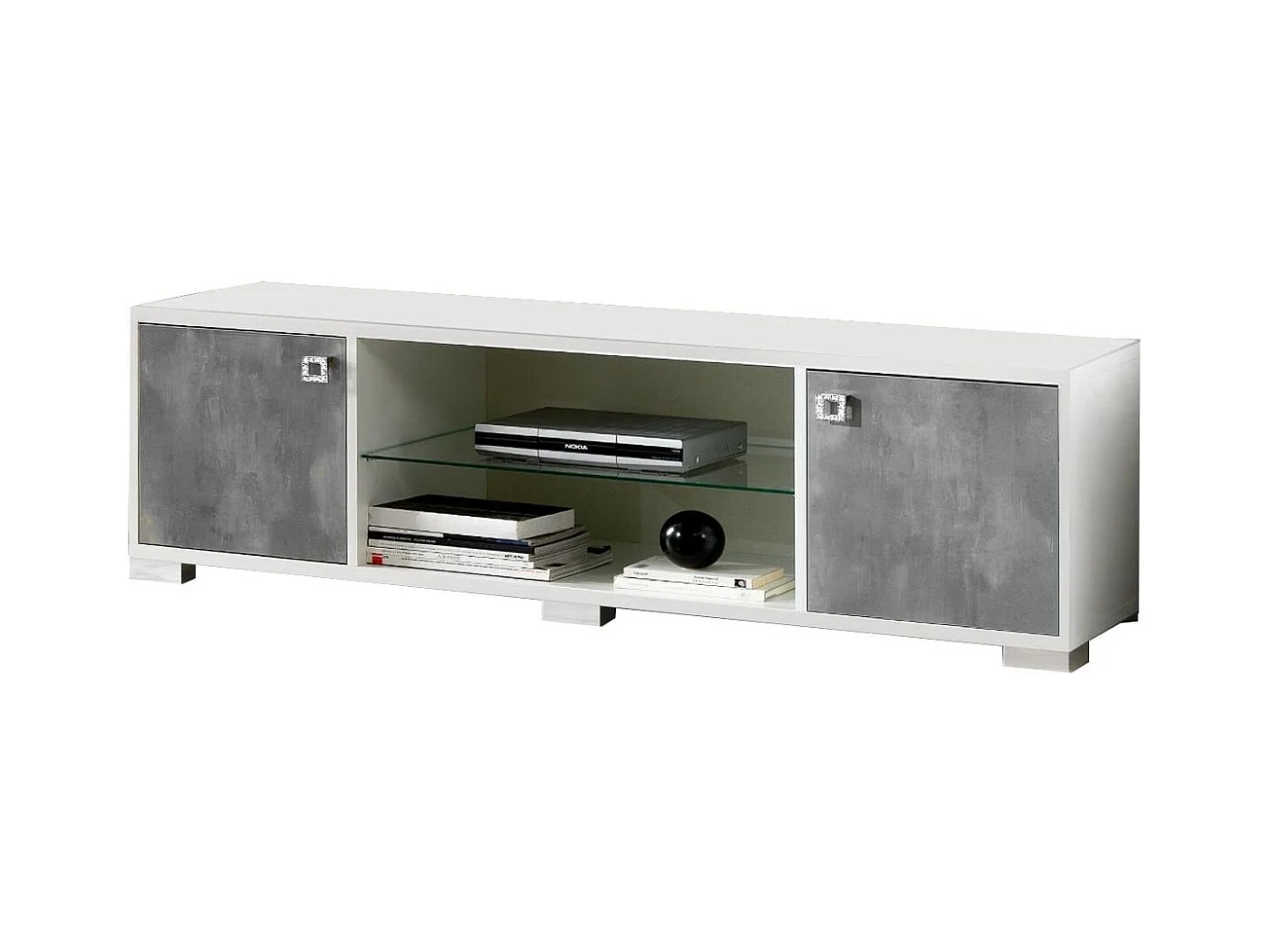 Meuble TV moderne gris béton et blanc brillant Sting 160cm