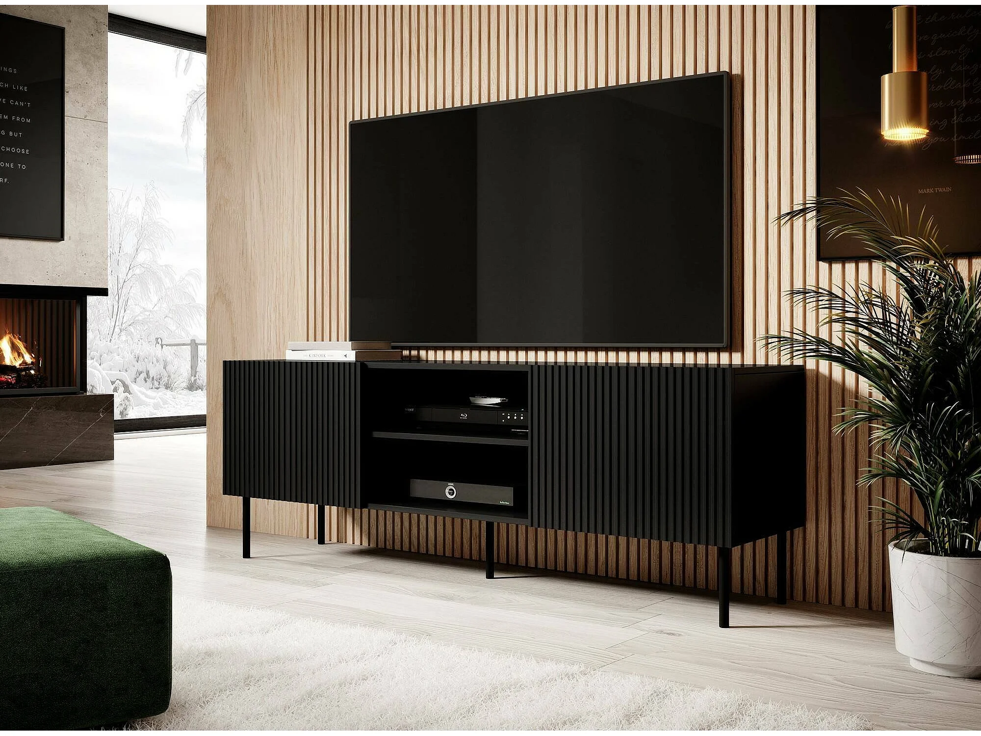 Meuble TV Gouveia, 3 étagères, 42x150x52h cm Noir