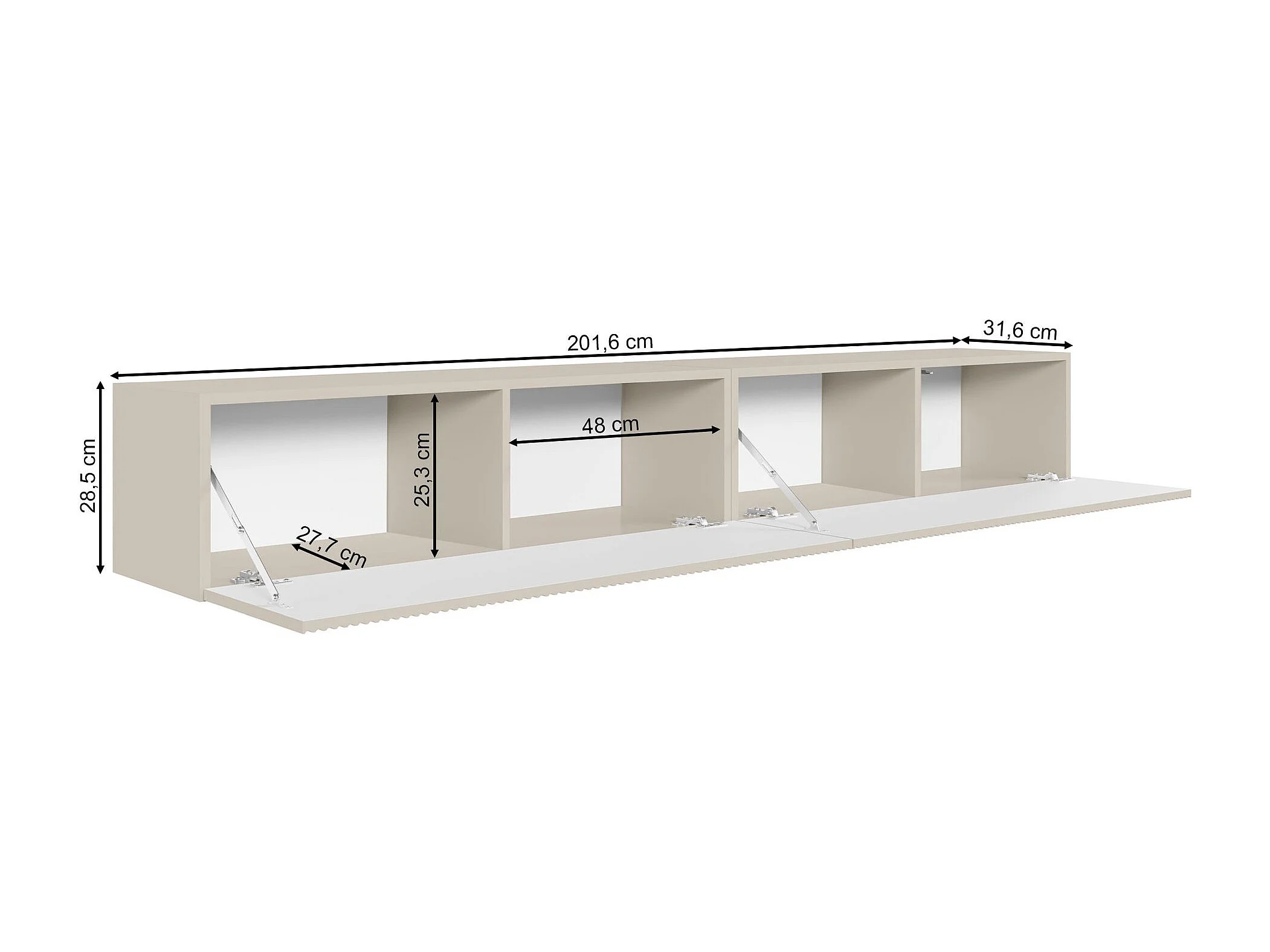 Meuble TV mural avec façades à lamelles rainurées – 2 portes – beige gris – 200 cm – VELDIO
