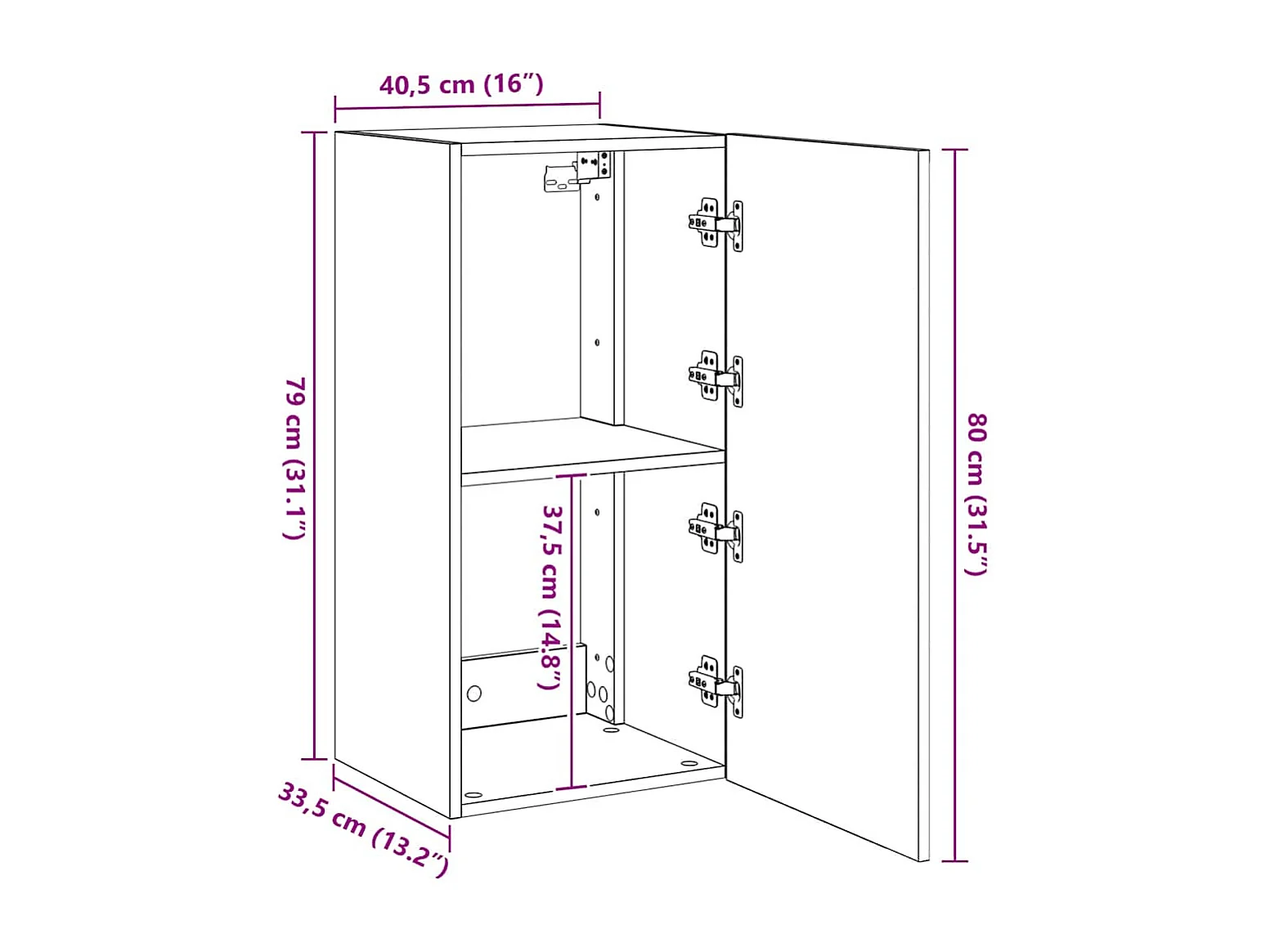 Meuble TV mural avec lumières LED noir 40,5x35x80 cm