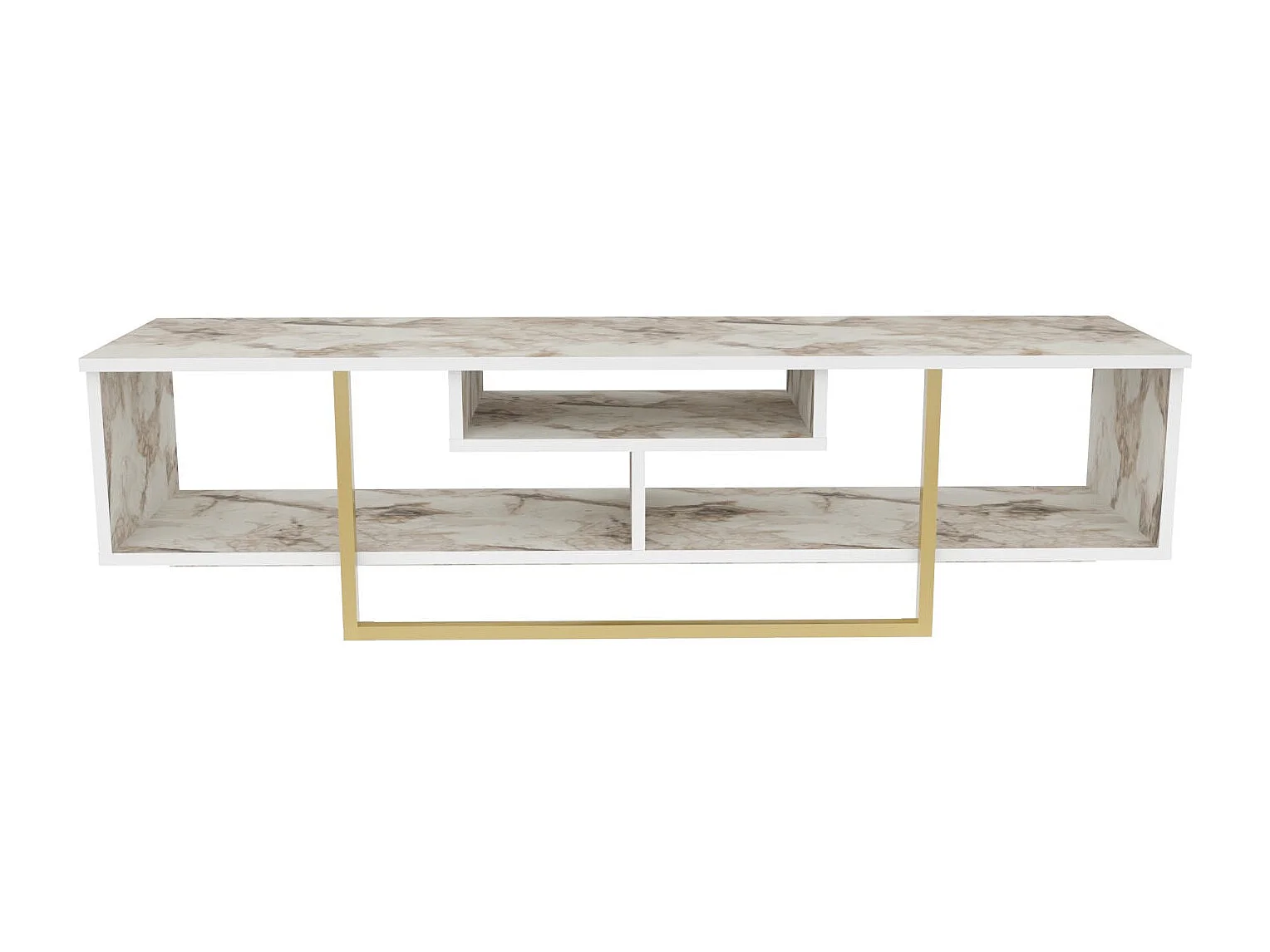 Meuble TV Nikolai 150cm Or et Blanc Effet marbre