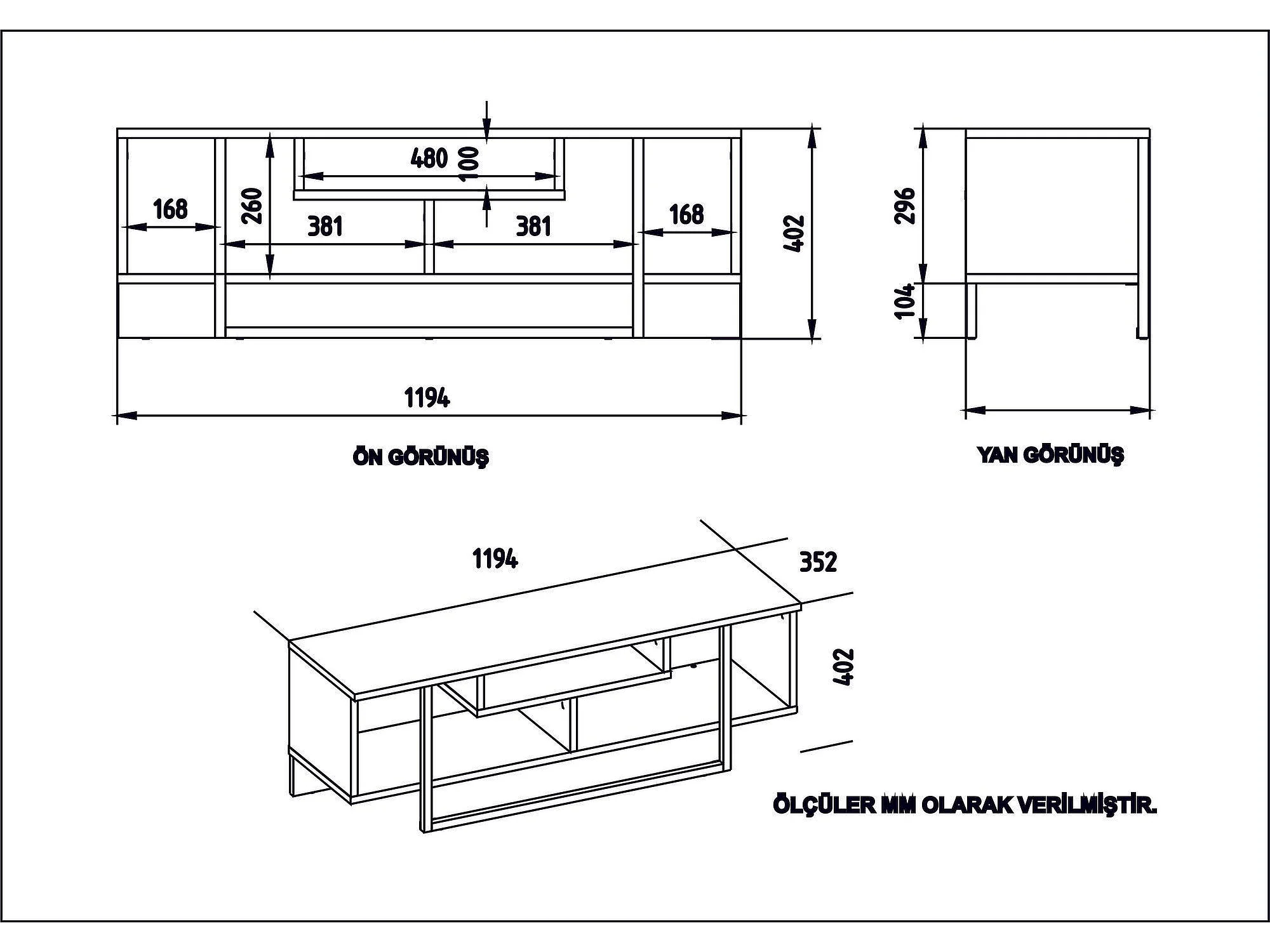 Meuble Tv design Arilis L180cm Bois foncé et Blanc