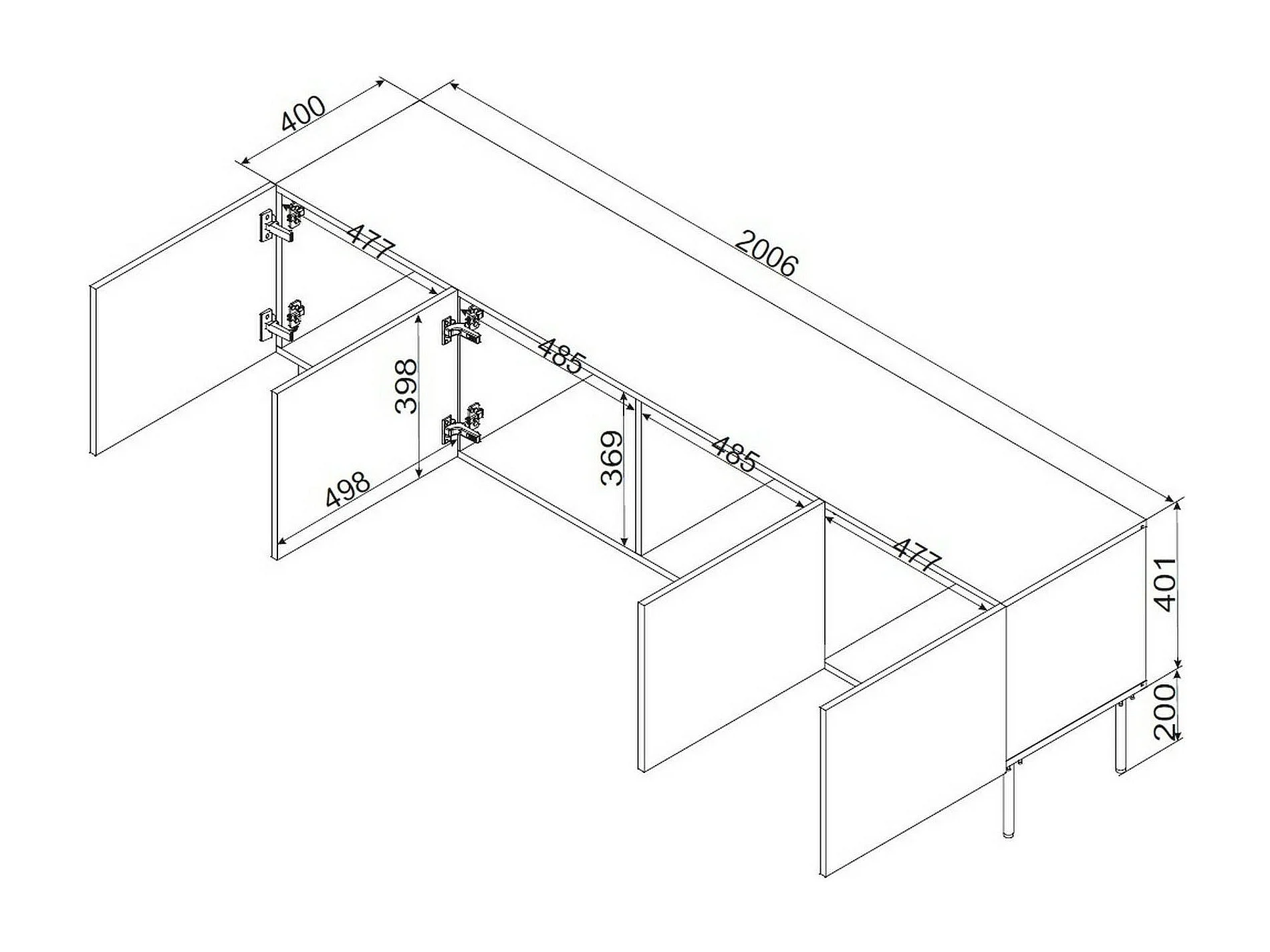 Meuble TV Trofa, une étagère, 42x200,5x60 cm, noir