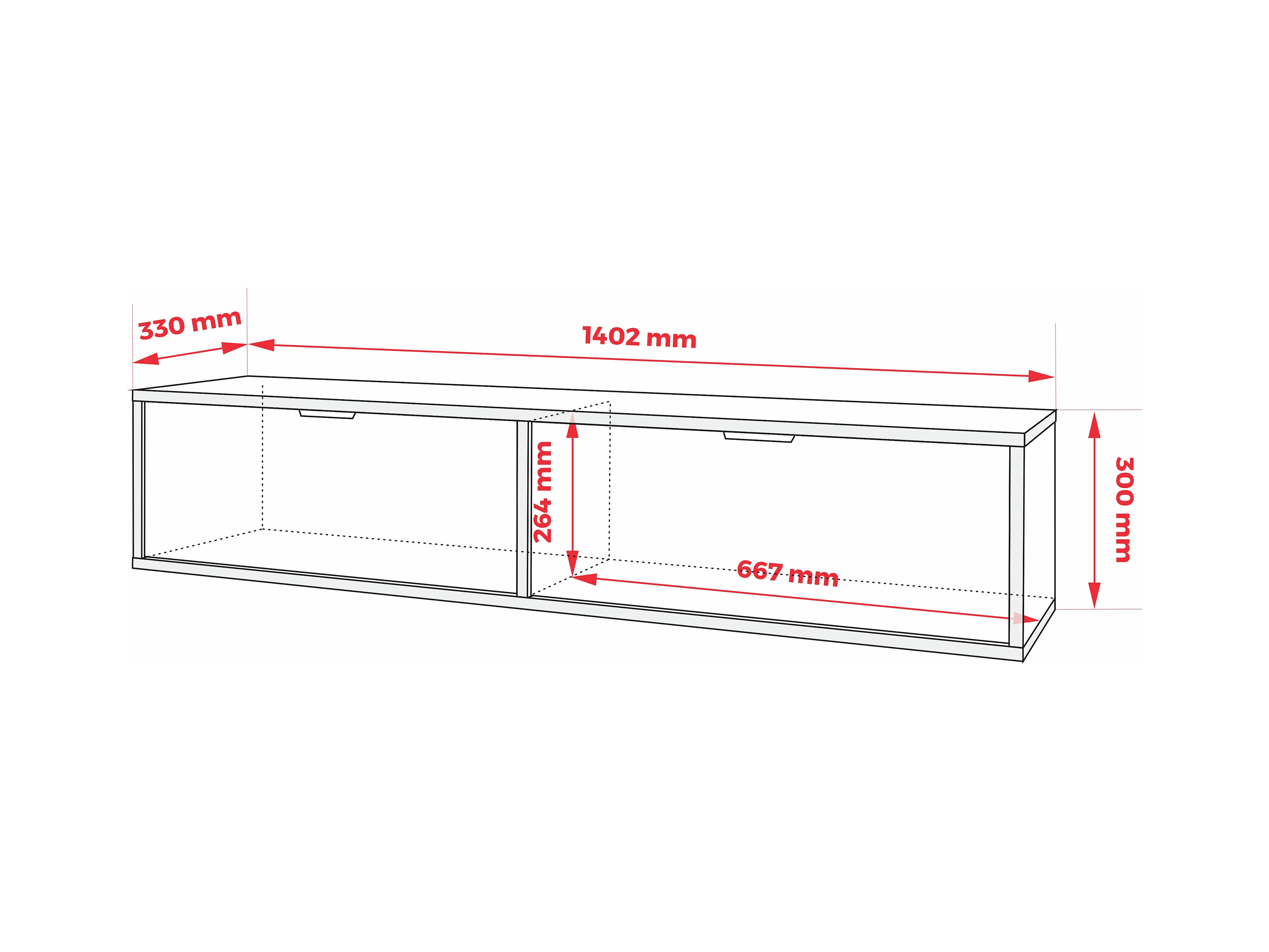 Meuble TV suspendu, Cachemire, 30 x 140 x 33cm, poignées noires