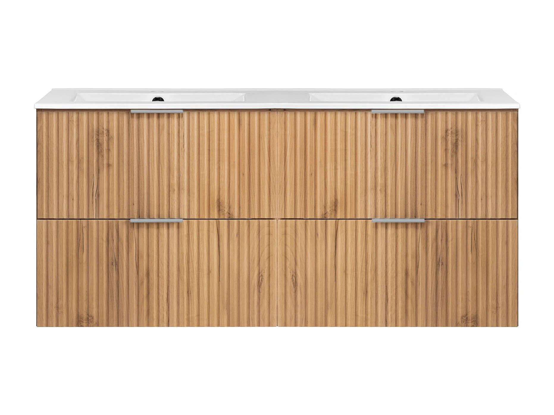 Meuble vasque, Chêne Craft, 120 (2 x 60) x 57 x 46 cm, poignée argentée, sans plateau