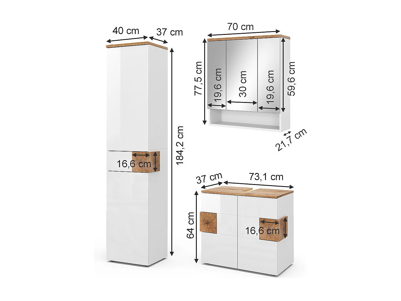 Meubles bain blanc 73x37x64 eden