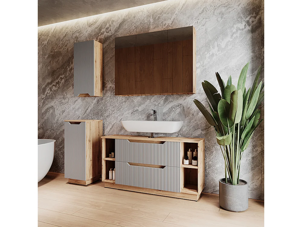 Meubles bain chêne/gris rayé 119.2x35x62.5 lotta