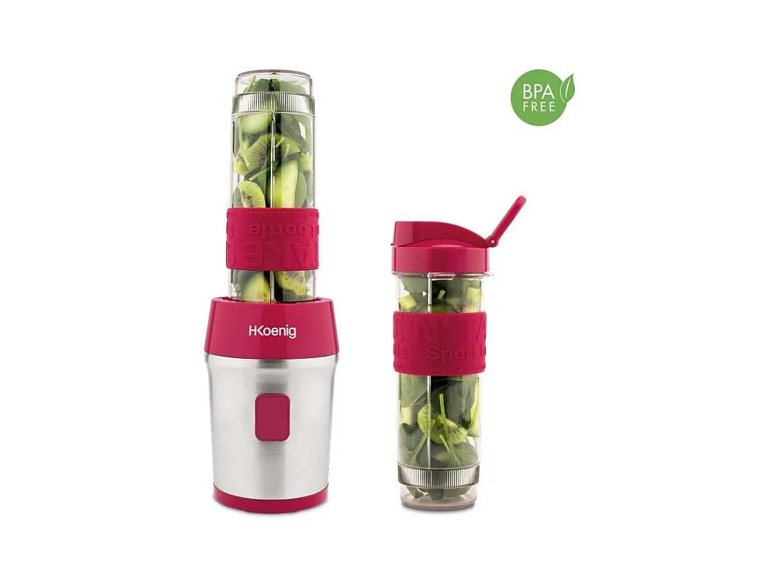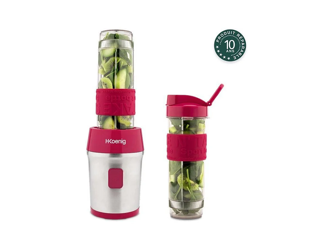 Mini blender - H.Koenig - SMOO10 - 300 W - 570 mL - Framboise - 2 gourdes incluses