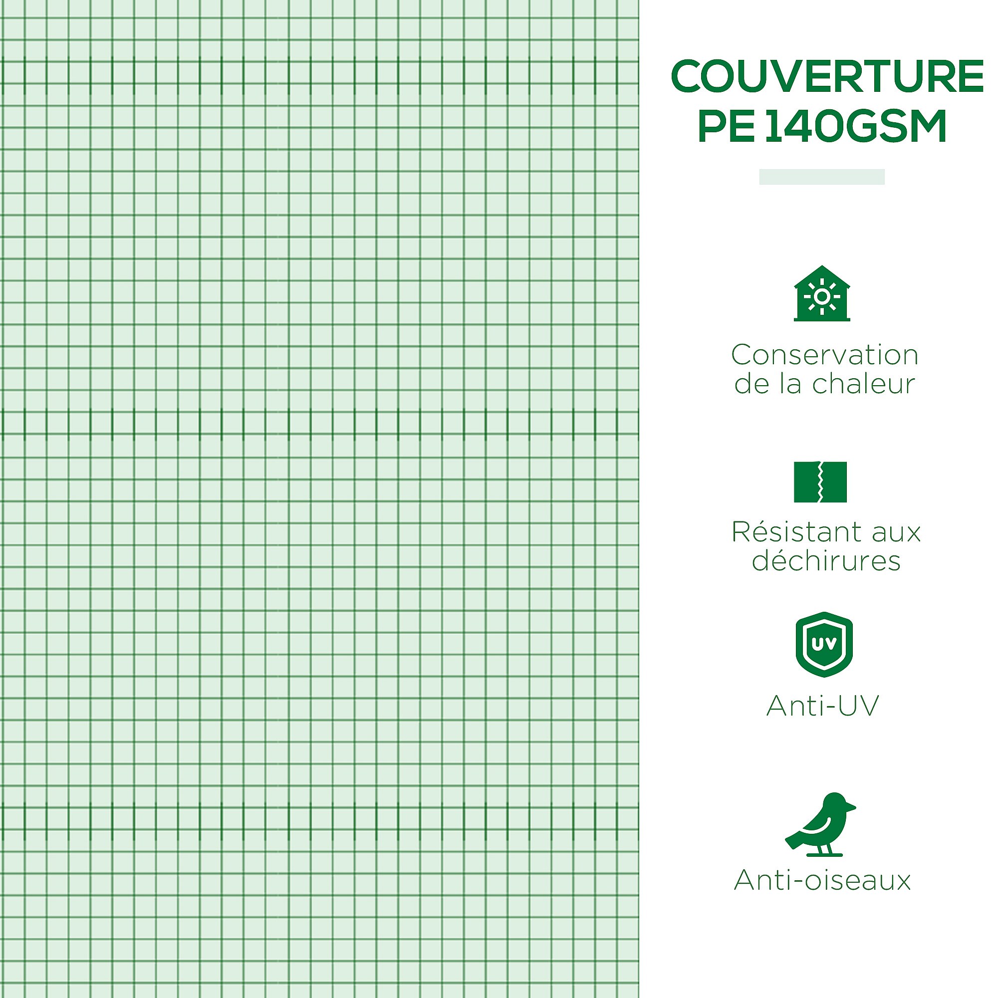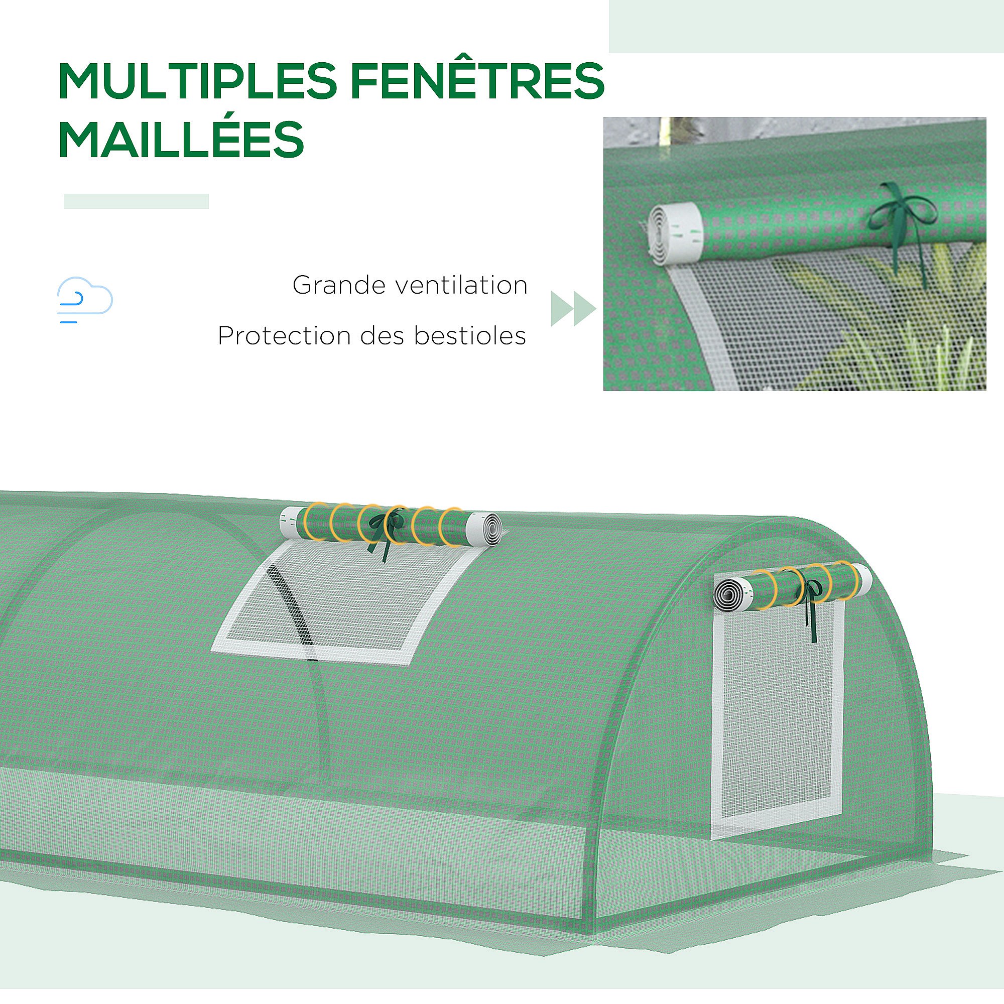 Mini serre de jardin serre à tomates dim. 300L x 80l x 45H cm acier PE 5 fenêtres zippées enroulables vert