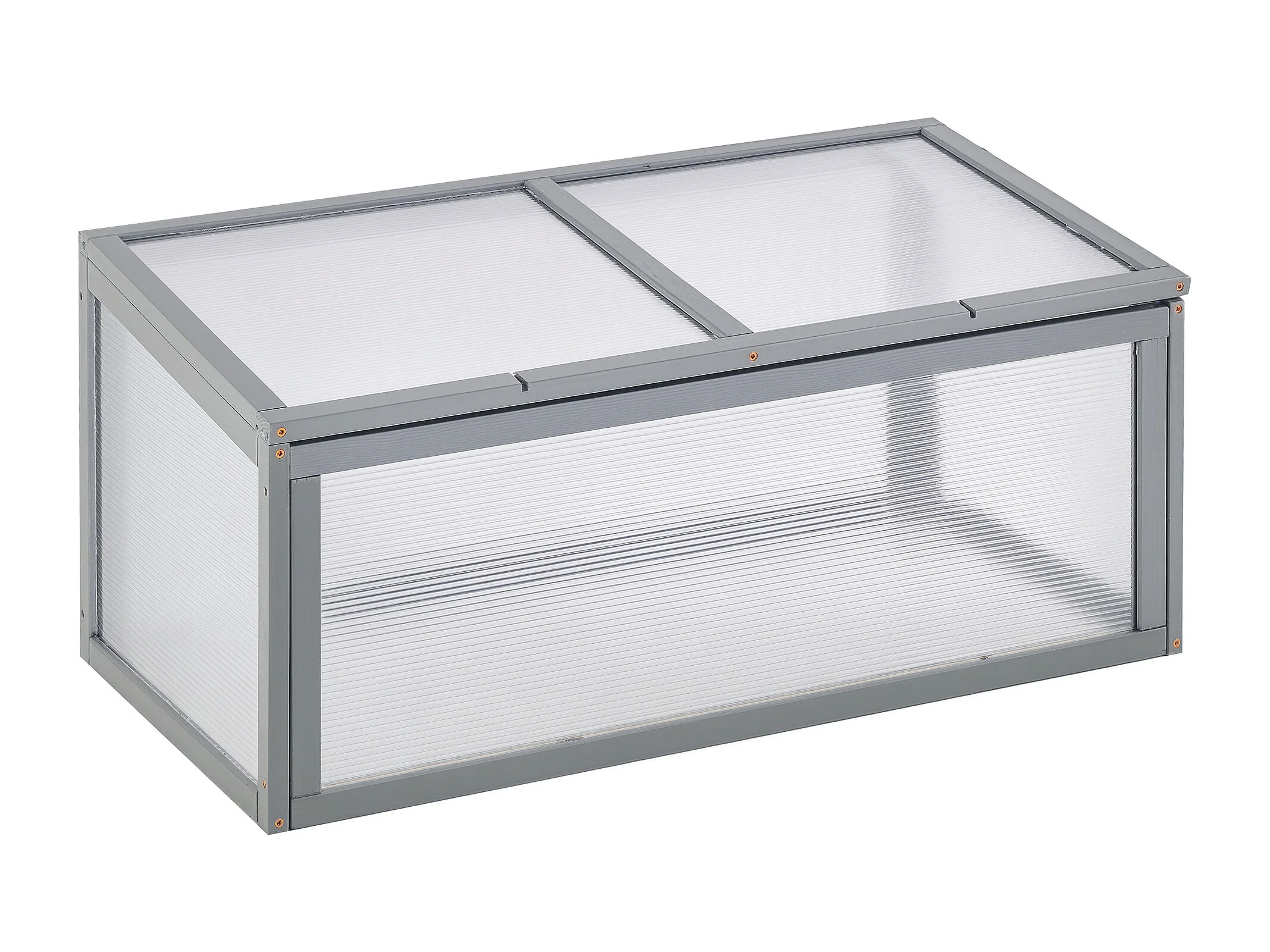 Mini serre de jardin serre à tomates dim. 90L x 46l x 40H cm toit ouvrable panneaux de polycarbonate bois sapin pré-huilé gris