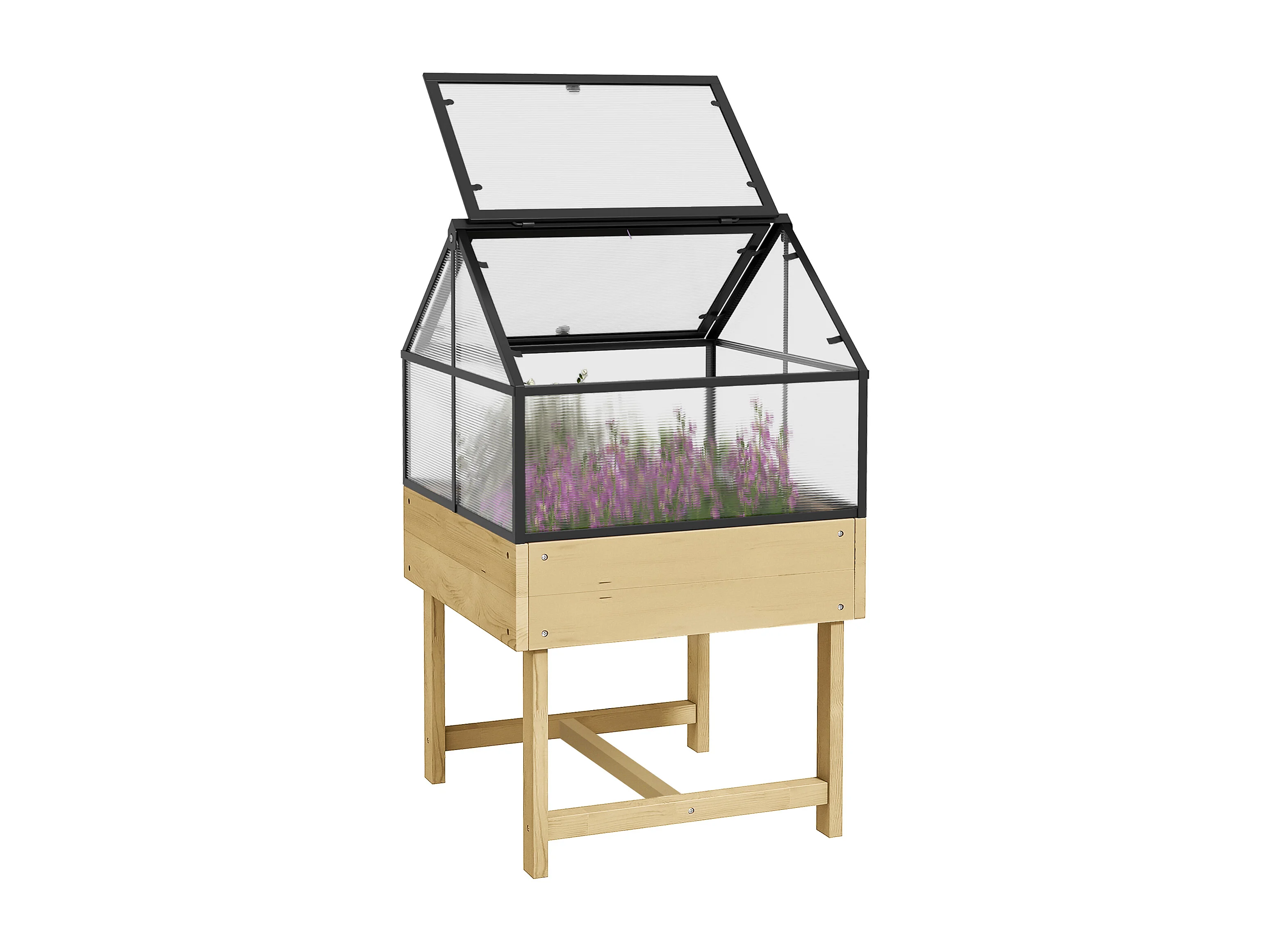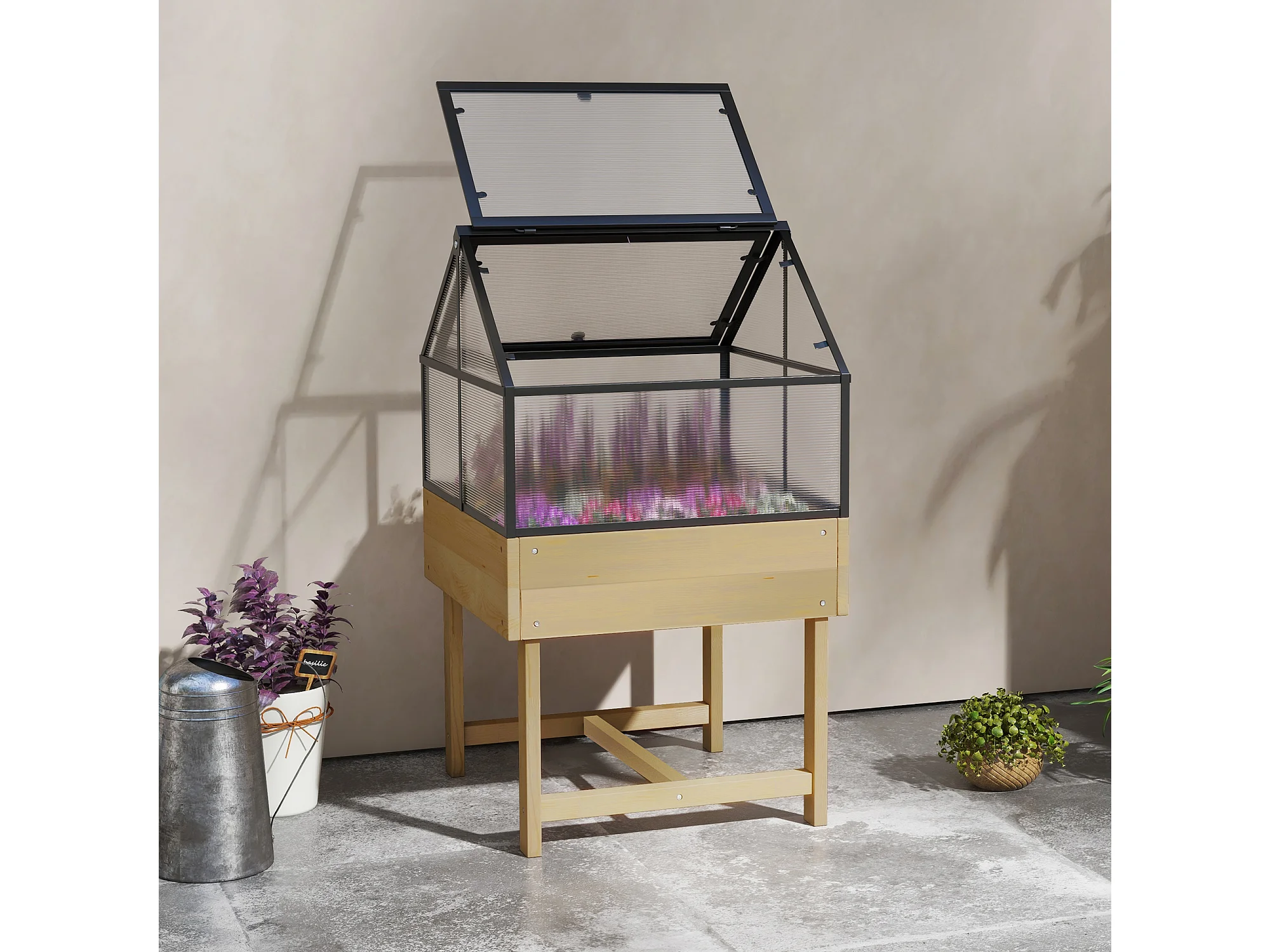 Mini serre sur pied double toit ouvrable acier sapin autoclave polycarbonate