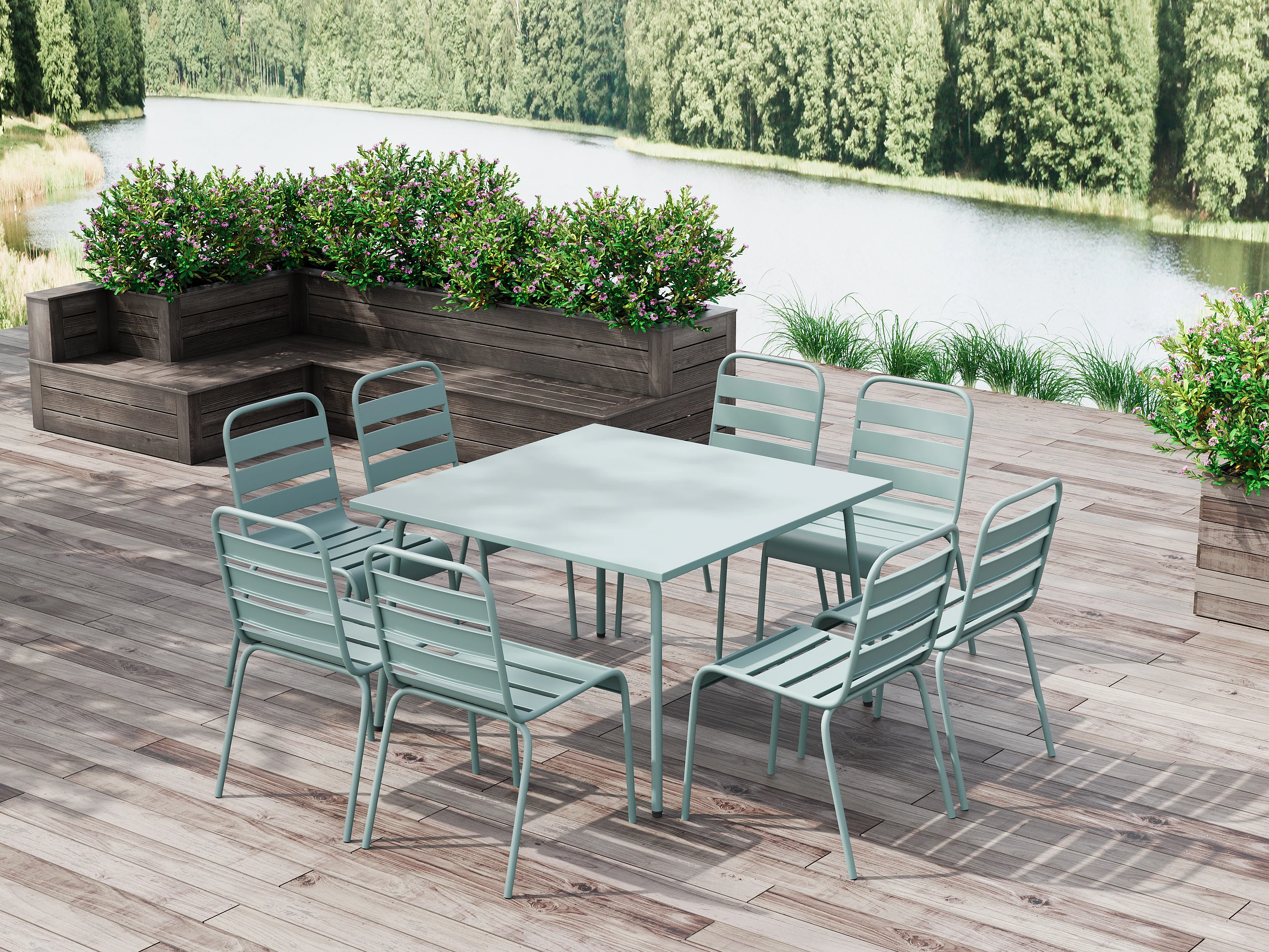 Table de jardin carrée L.120 cm en métal - Vert amande - MIRMANDE de MYLIA