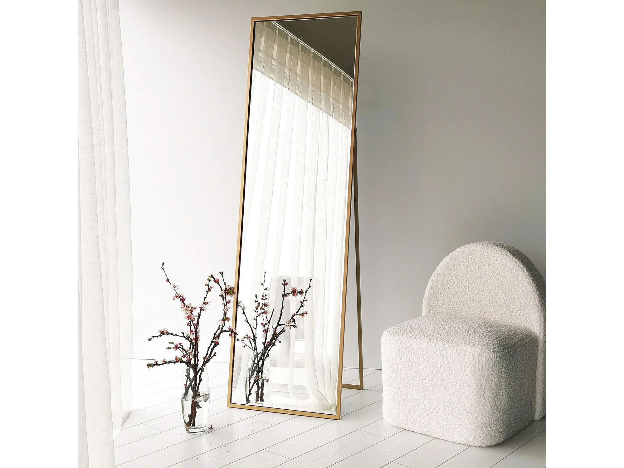 Miroir sur pied pleine longueur, 50x170 cm, doré.
