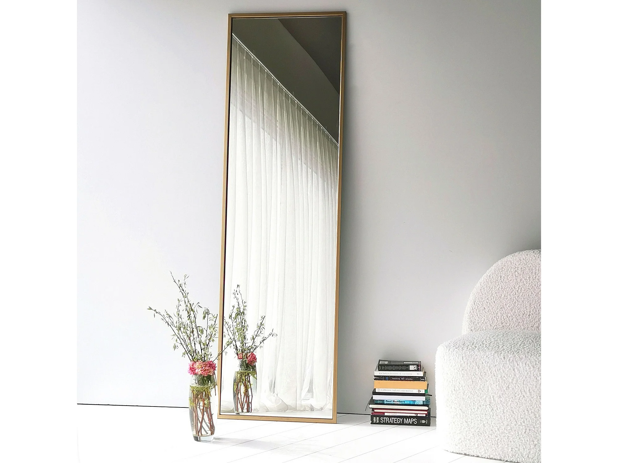 Miroir complet arqué, 162 x 53 cm, pleine longueur, monté au mur, miroir de sol, pour le salon, Doré