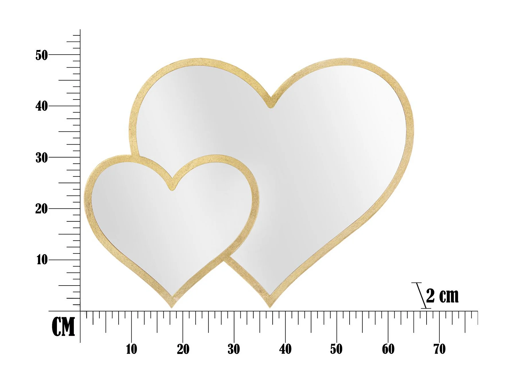 Double Miroir Mural Déco "Cœurs" 65cm Or