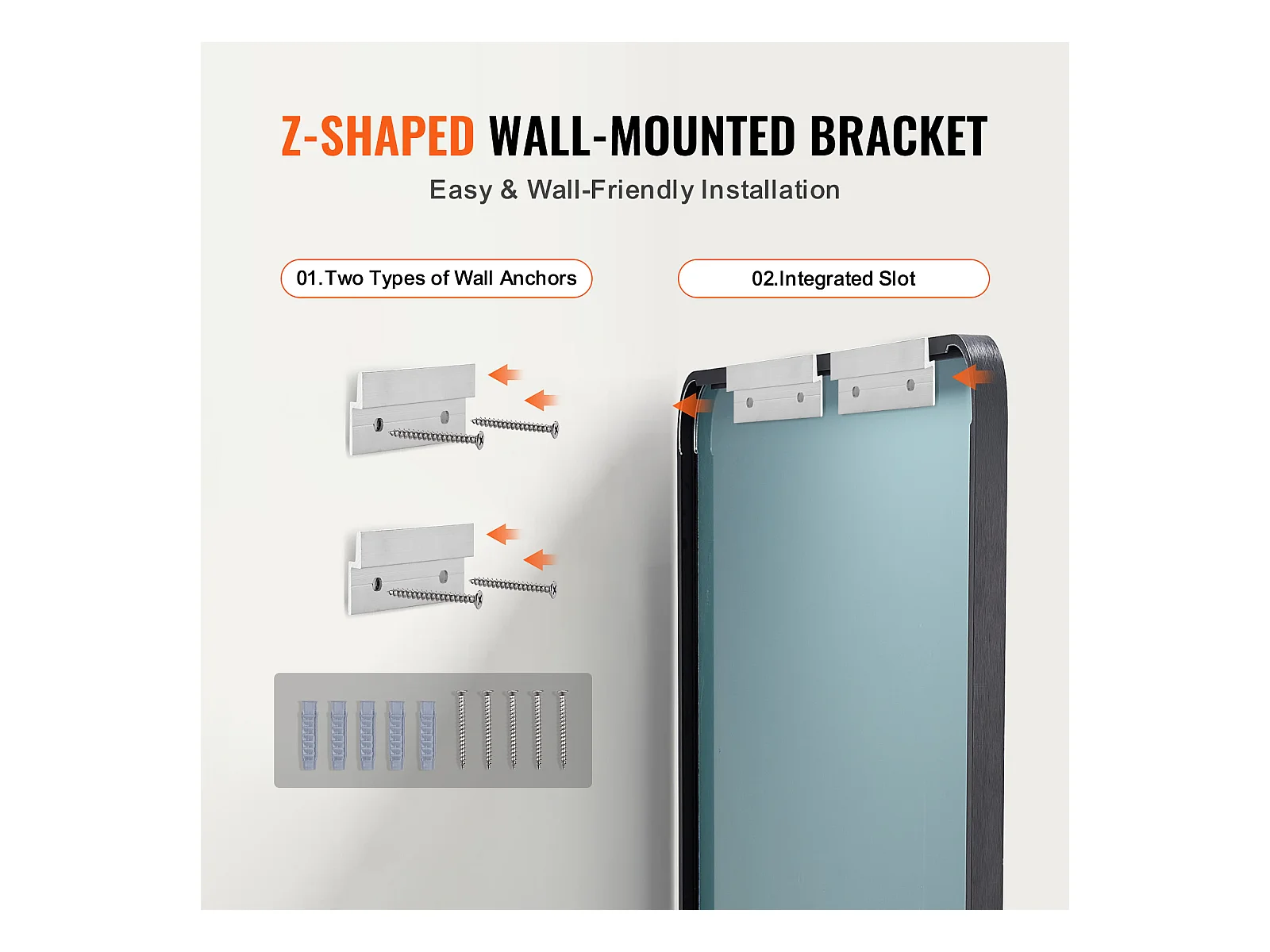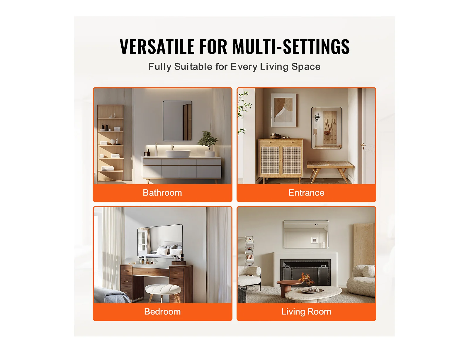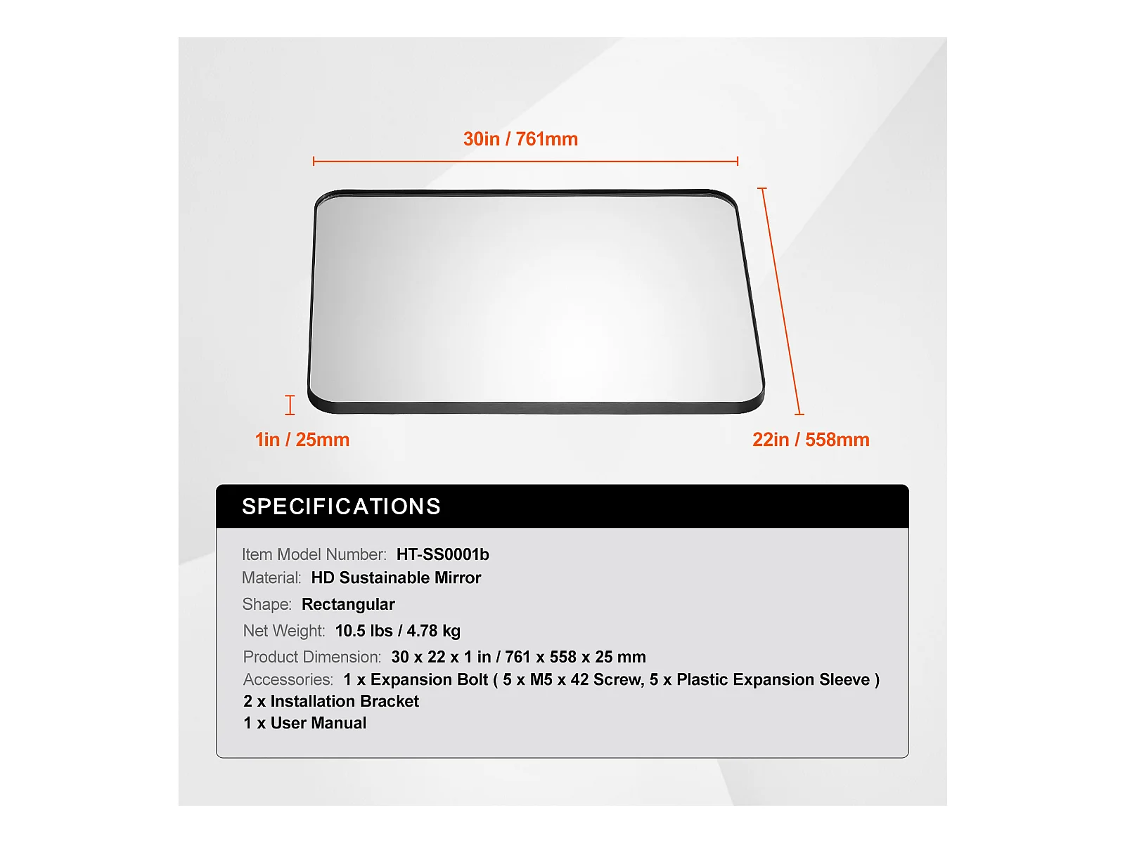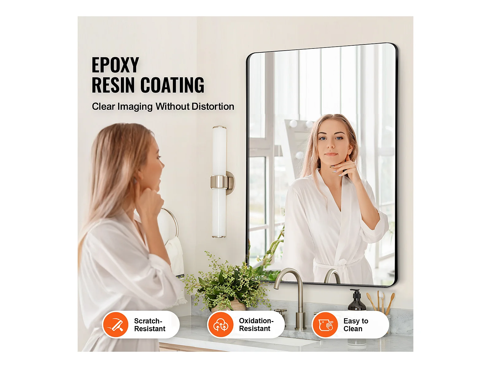 Miroir Mural SucceBuy, 55,8 X 76,1 cm, Noir, Avec Cadre en Alliage D'Aluminium, Film Antidéflagrant, Résistant aux Rayures pour la Maison