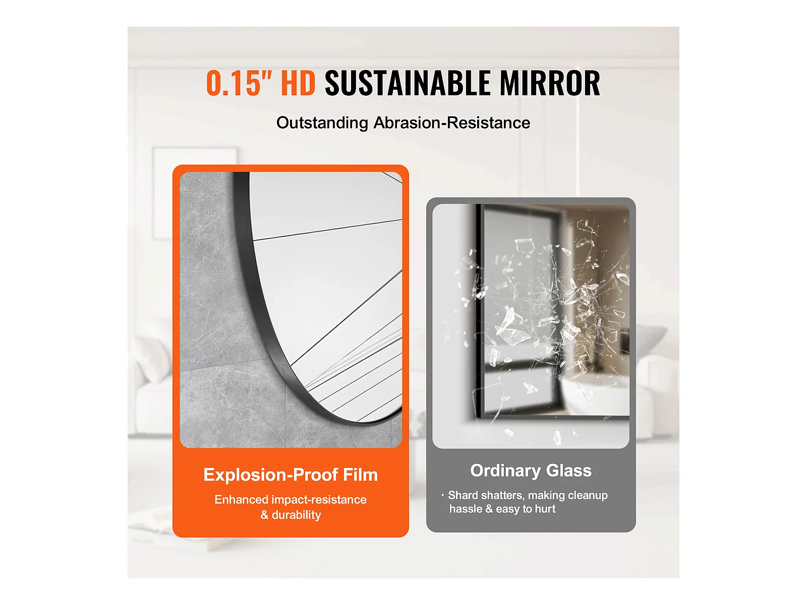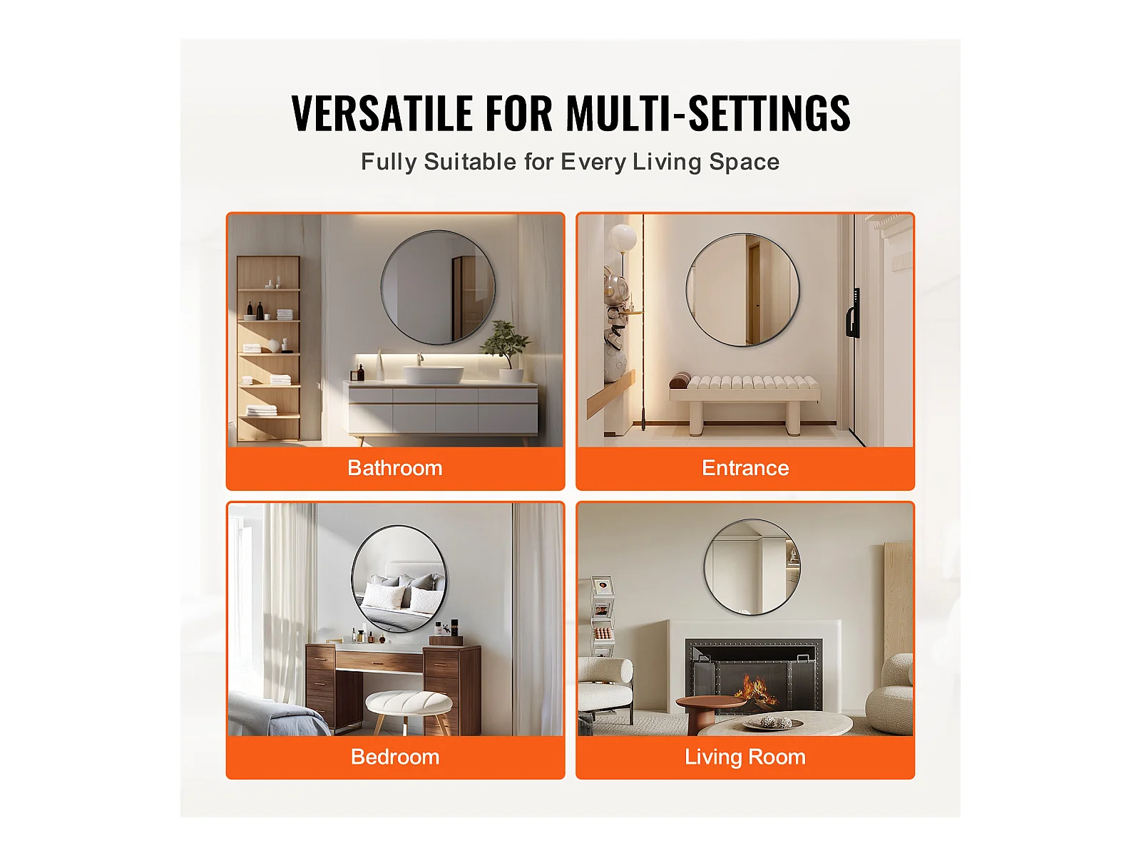 Miroir Mural SucceBuy 76,2 cm, Noir, Miroir Mural Rond avec Cadre en Alliage d'Aluminium