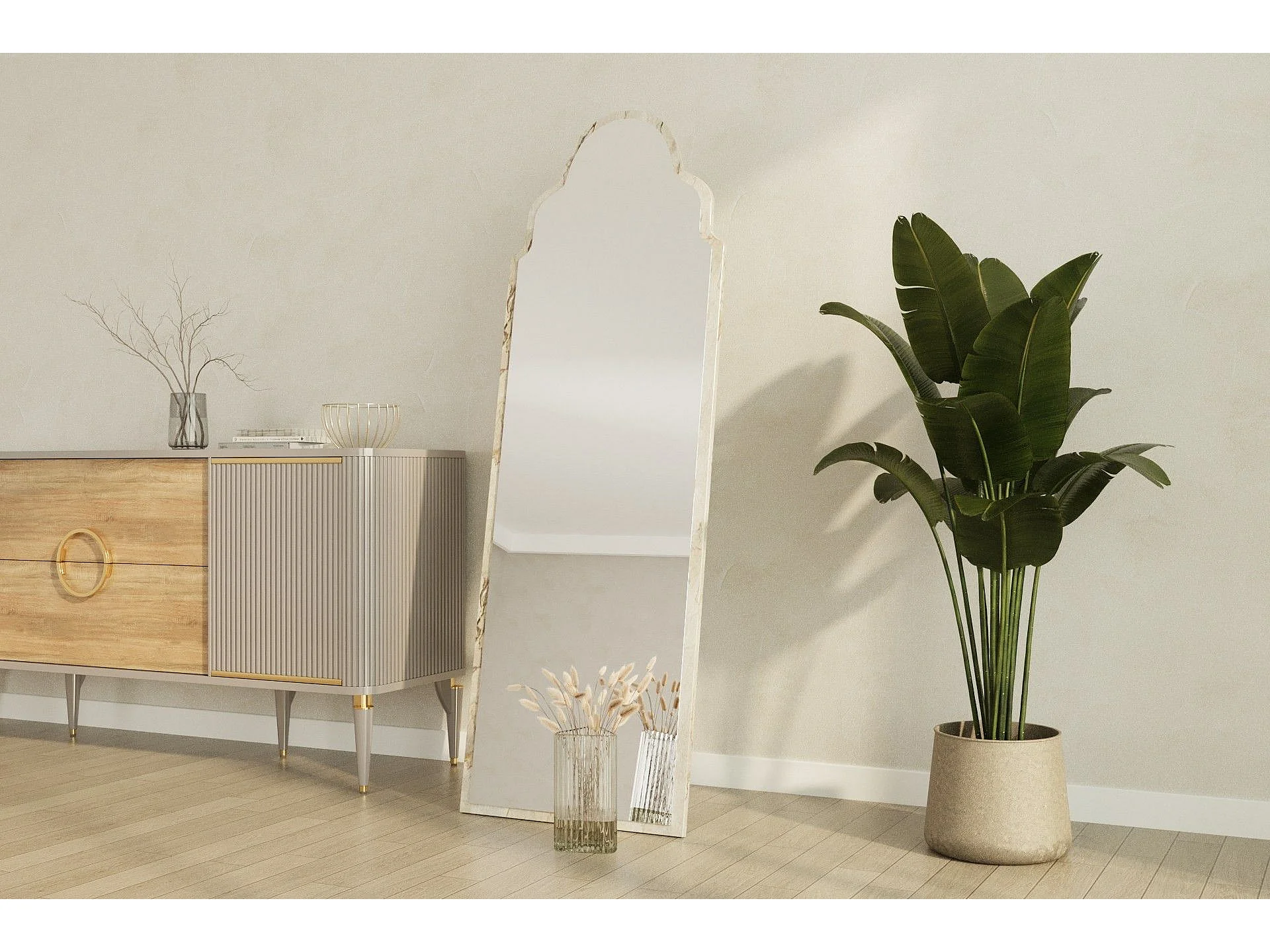 Miroir mural / sur pied Melta L50xH160cm Effet marbre blanc