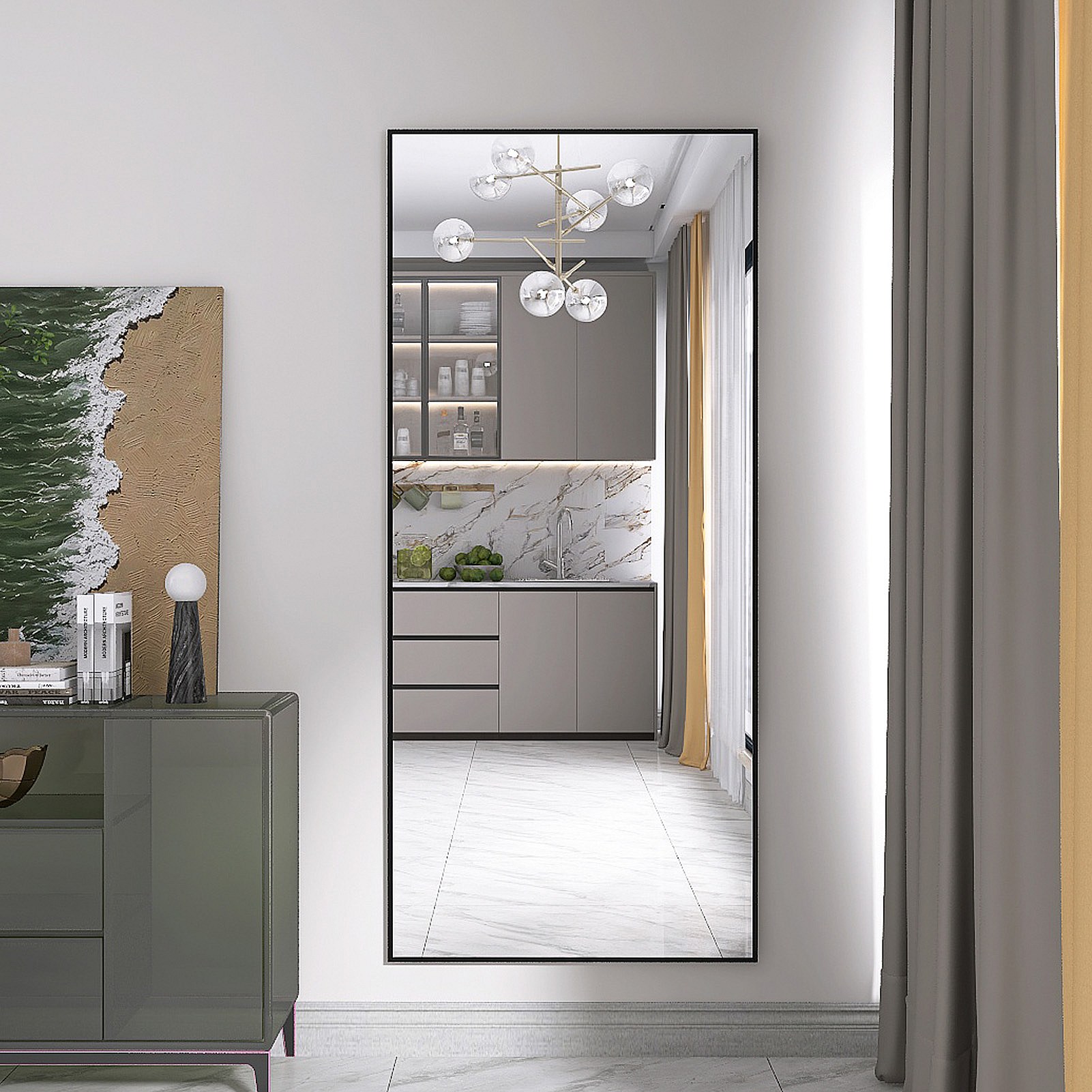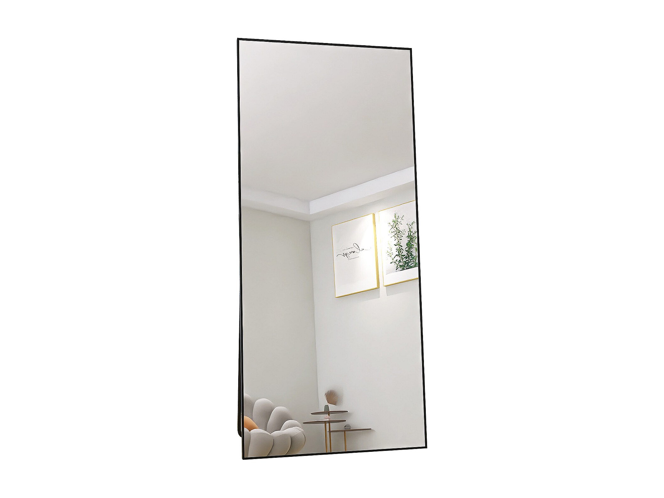 Miroir sur Pied 180x80 cm, Cadre Aluminium Noir, Miroir Mural Moderne à Poser ou Suspendre