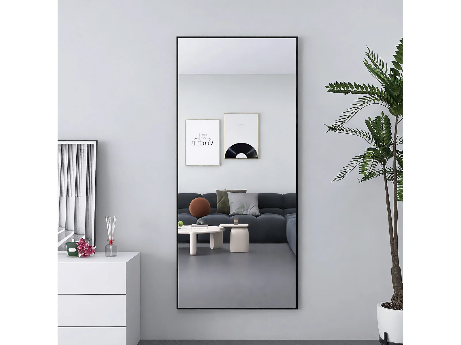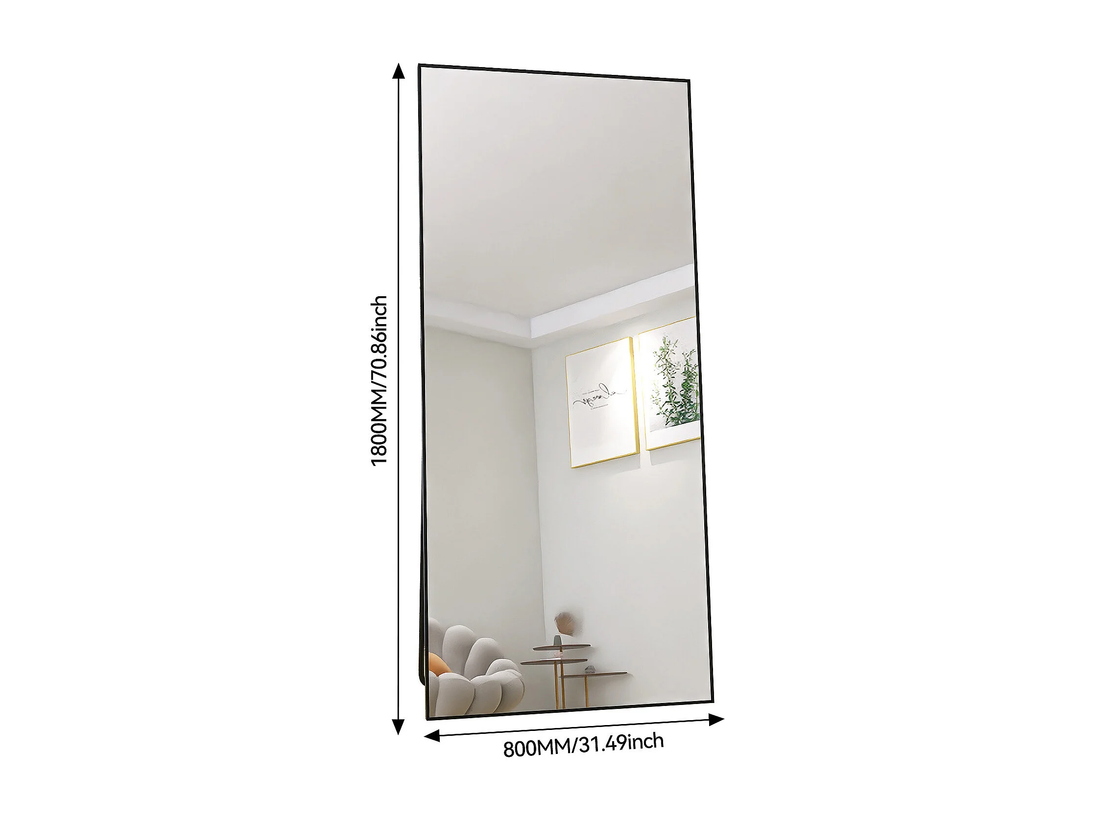 Miroir sur Pied Rectangle avec Cadre en Métal Miroir sur Pied HD Grand pour Salon, Chambre et Dressing Miroir Noir 180x80cm