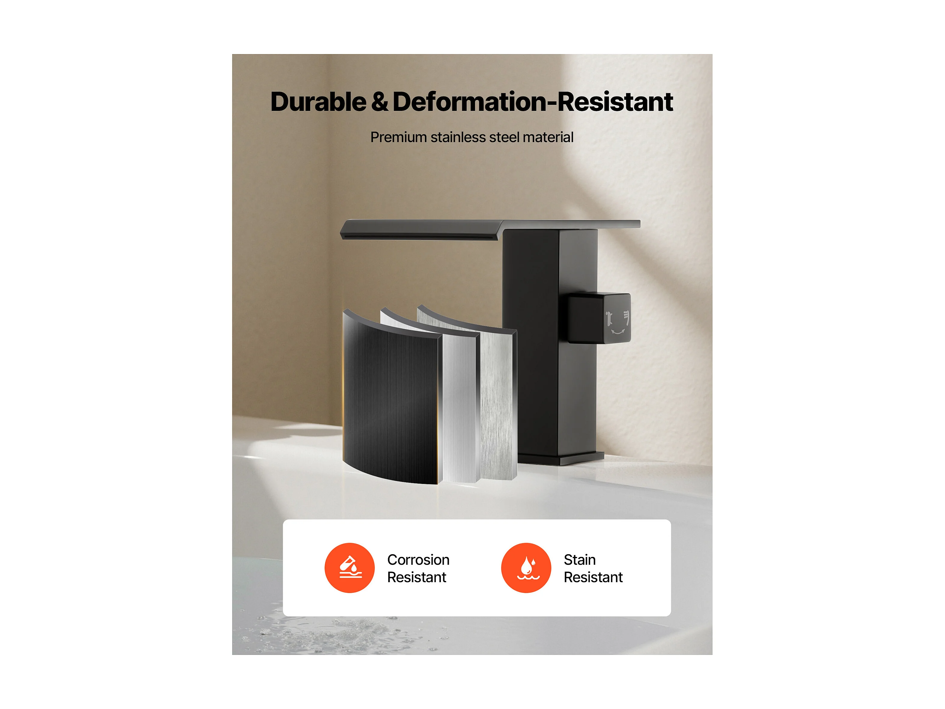 Mitigeur de Baignoire Romaine SucceBuy, Robinet de Bain à 3 Trous, Cascade, avec Pommeau de Douche et Une Poignée, en Acier Inoxydable, Anti-goutte