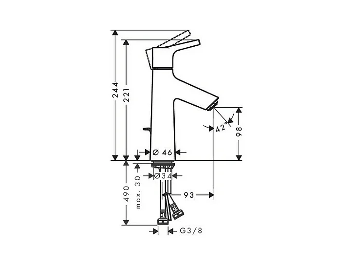 Mitigeur lavabo HANSGROHE Talis S 100 Chromé avec tirette et vidage