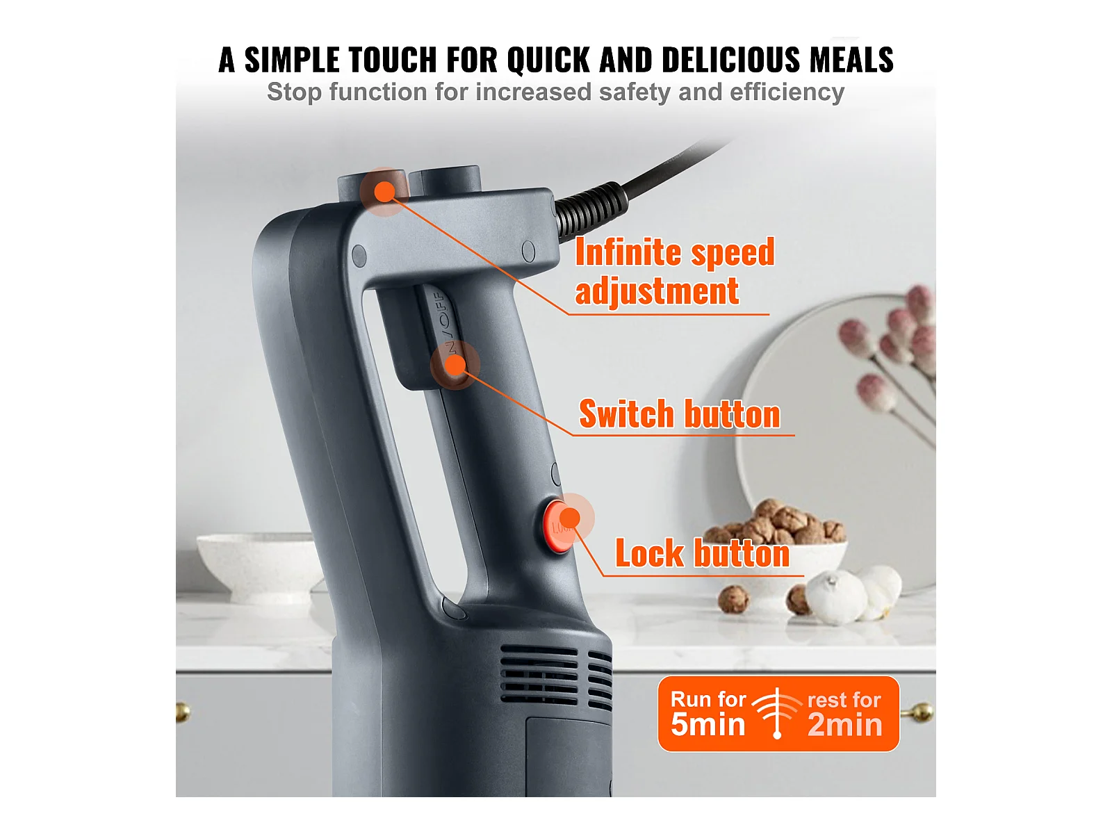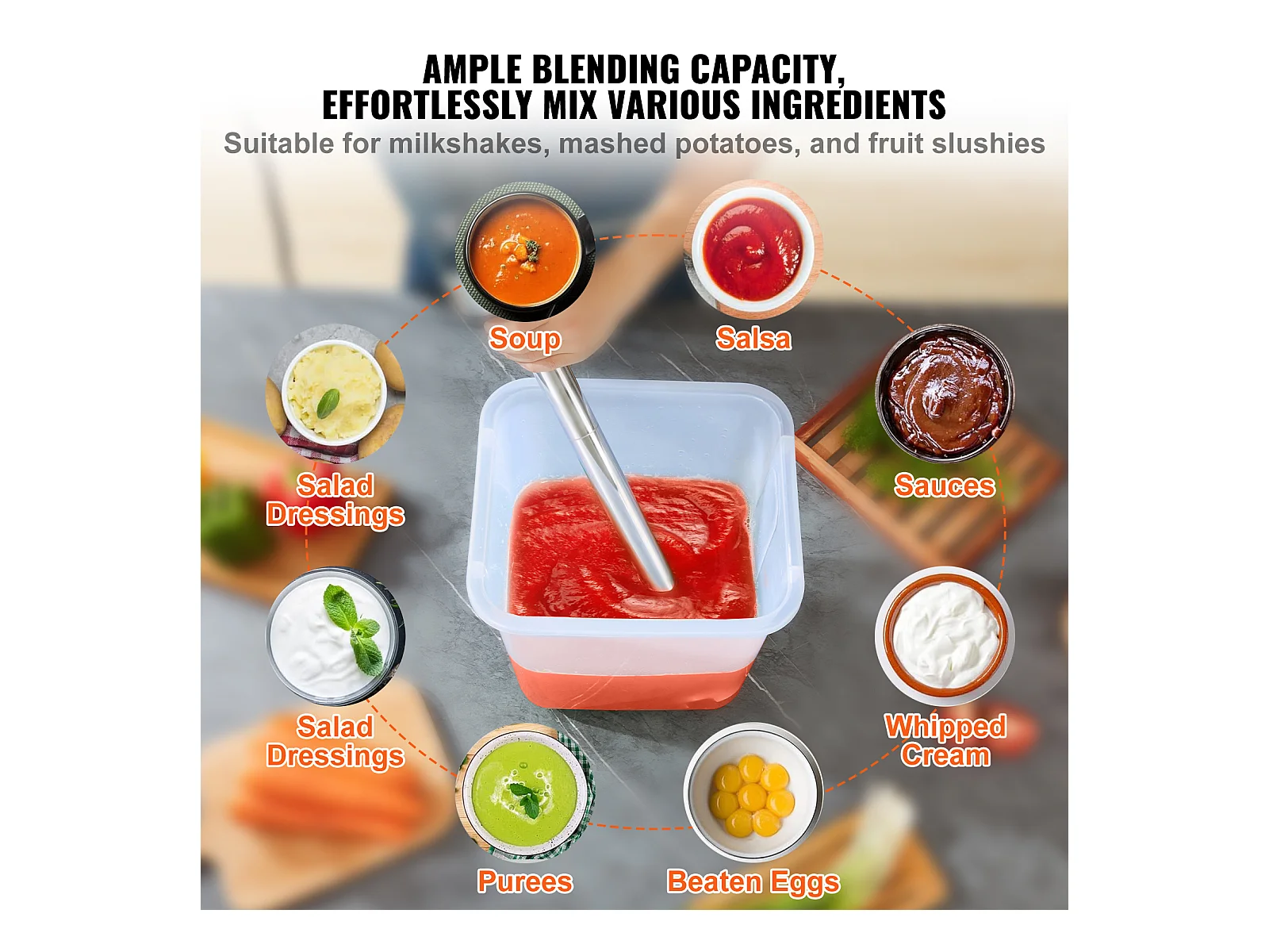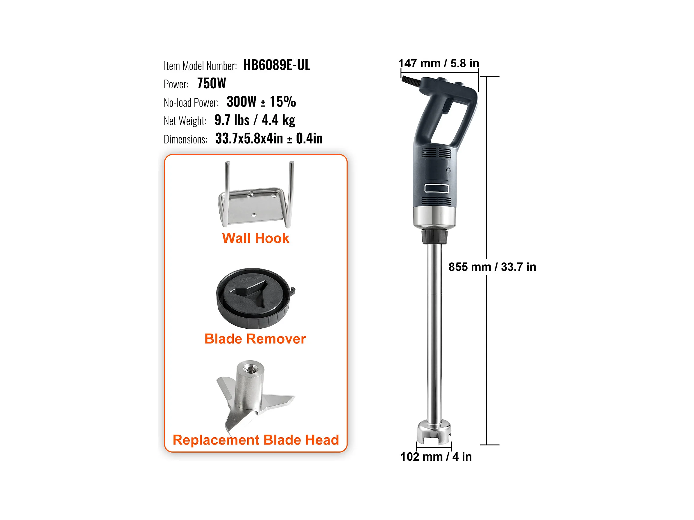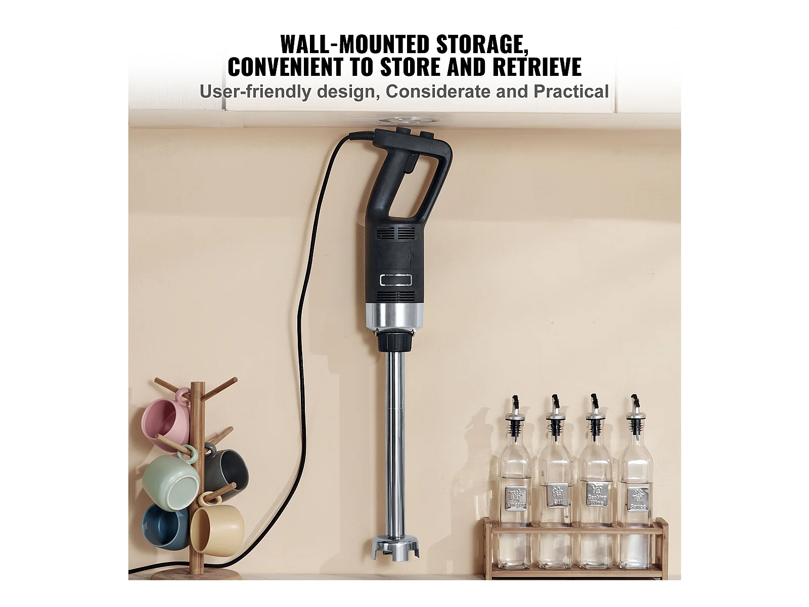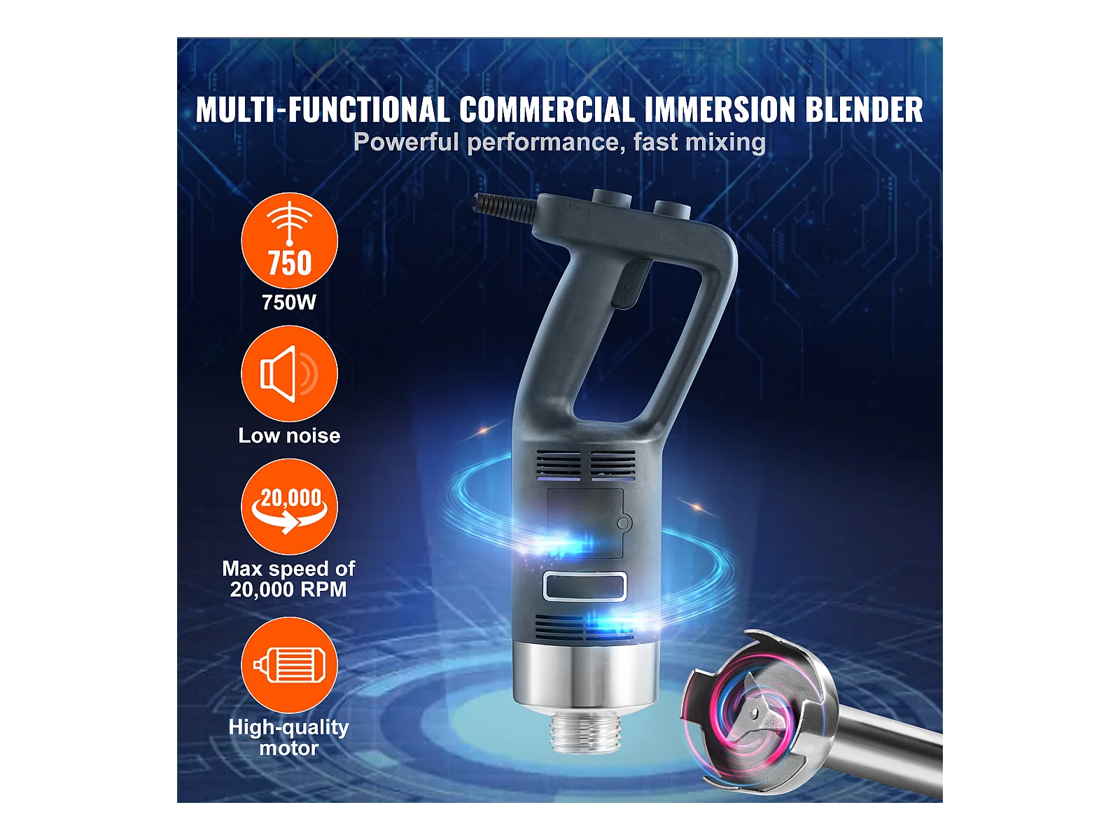 Mixeur Commercial SucceBuy, Mélangeur à Immersion Commercial, 750 W, en Acier Inoxydable, Mixeur à Main Robuste, Vitesse Variable