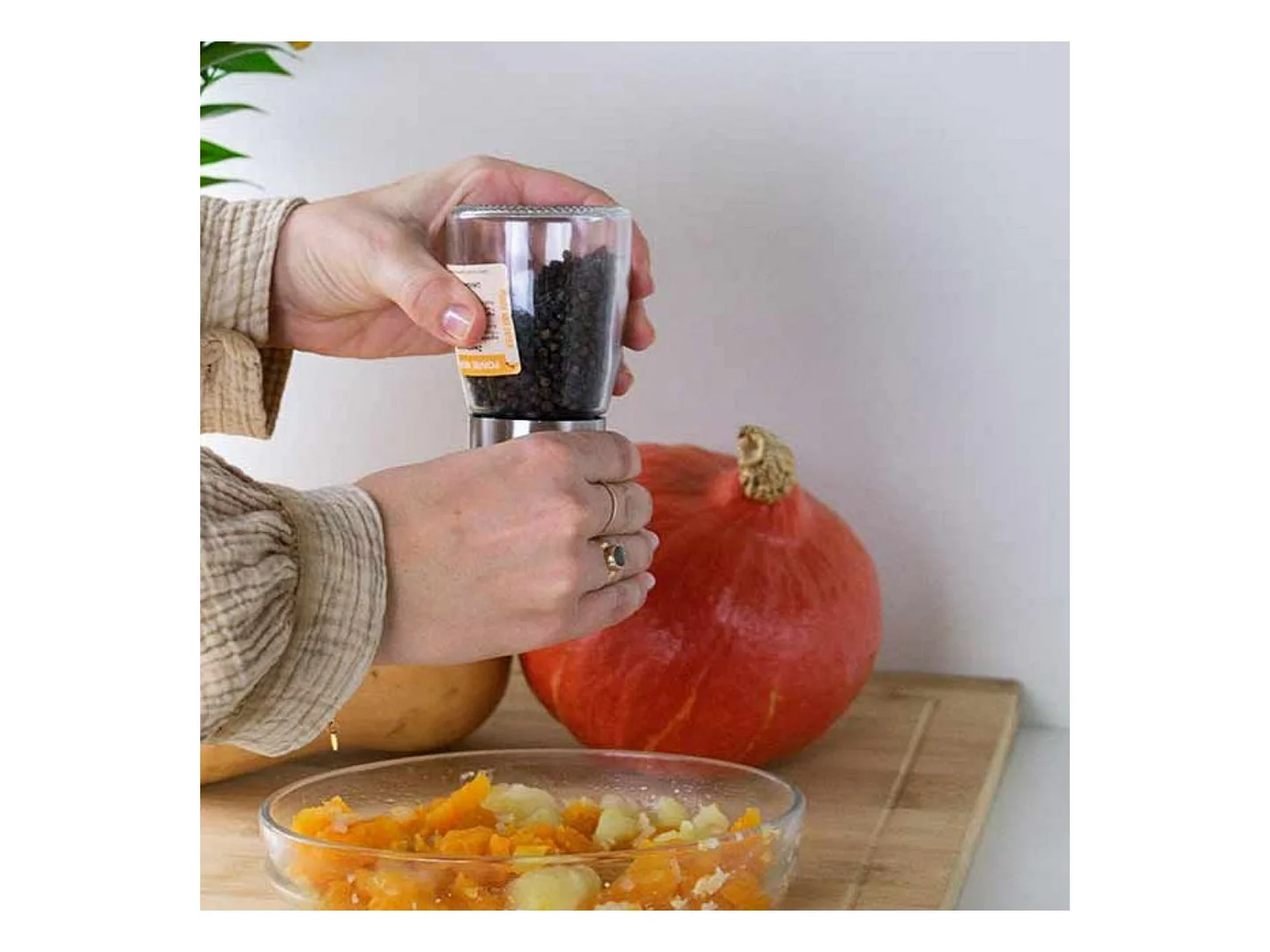 Mortier et pilon en grès blanc + Poivre noir bio entier - 55 g