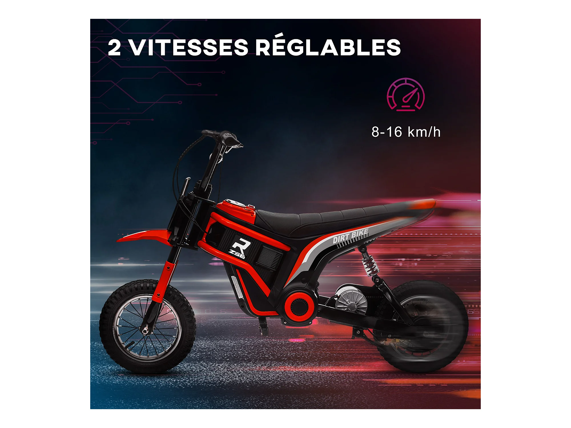 Moto cross électrique dirt bike enfant 350W 12V 2 vitesses 8-16 Km/h rouge noir