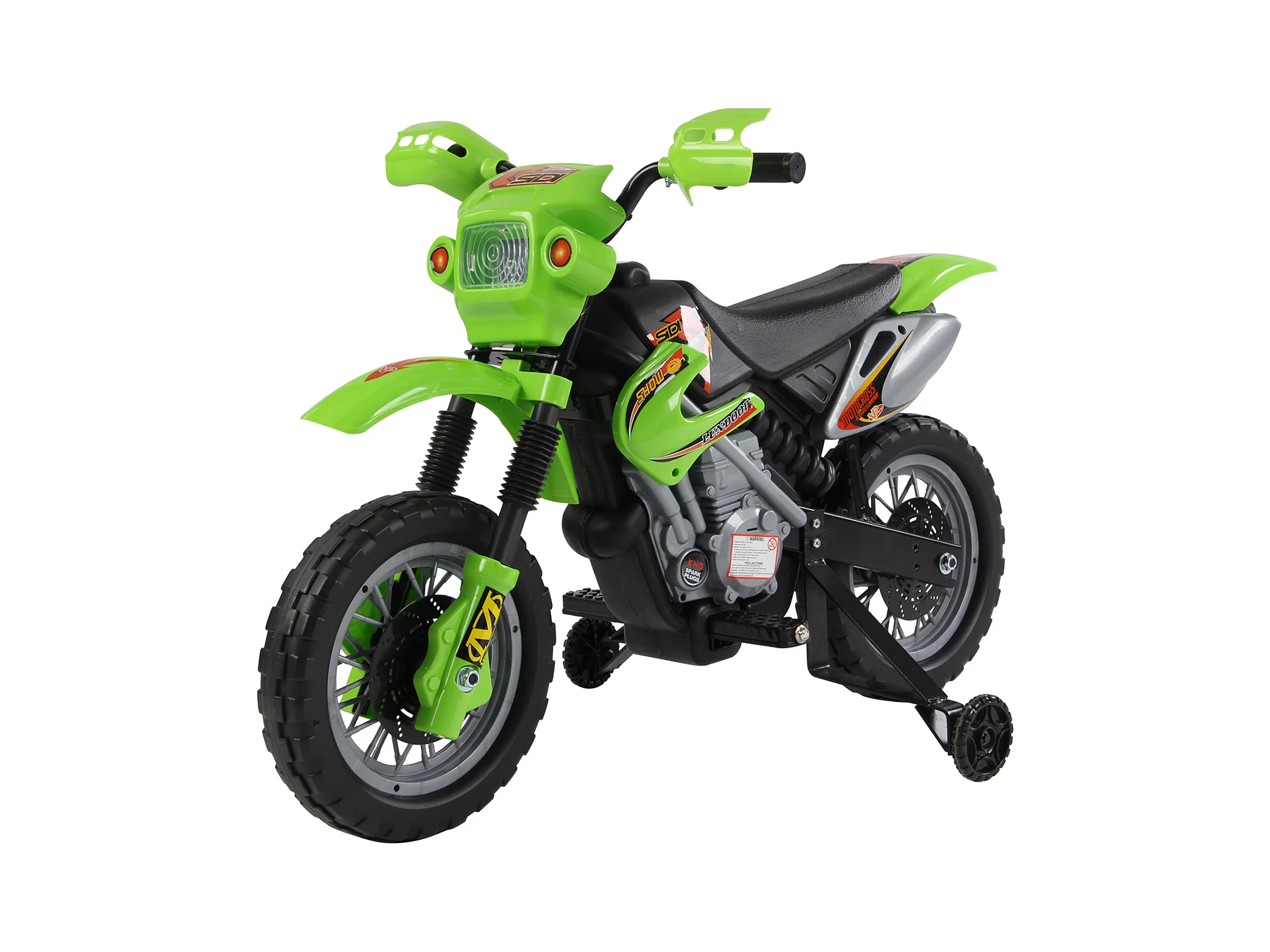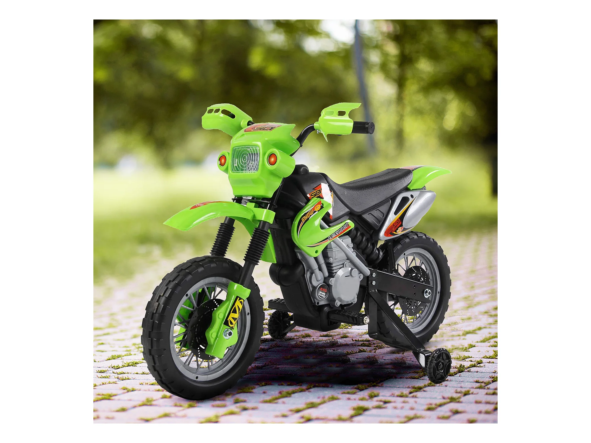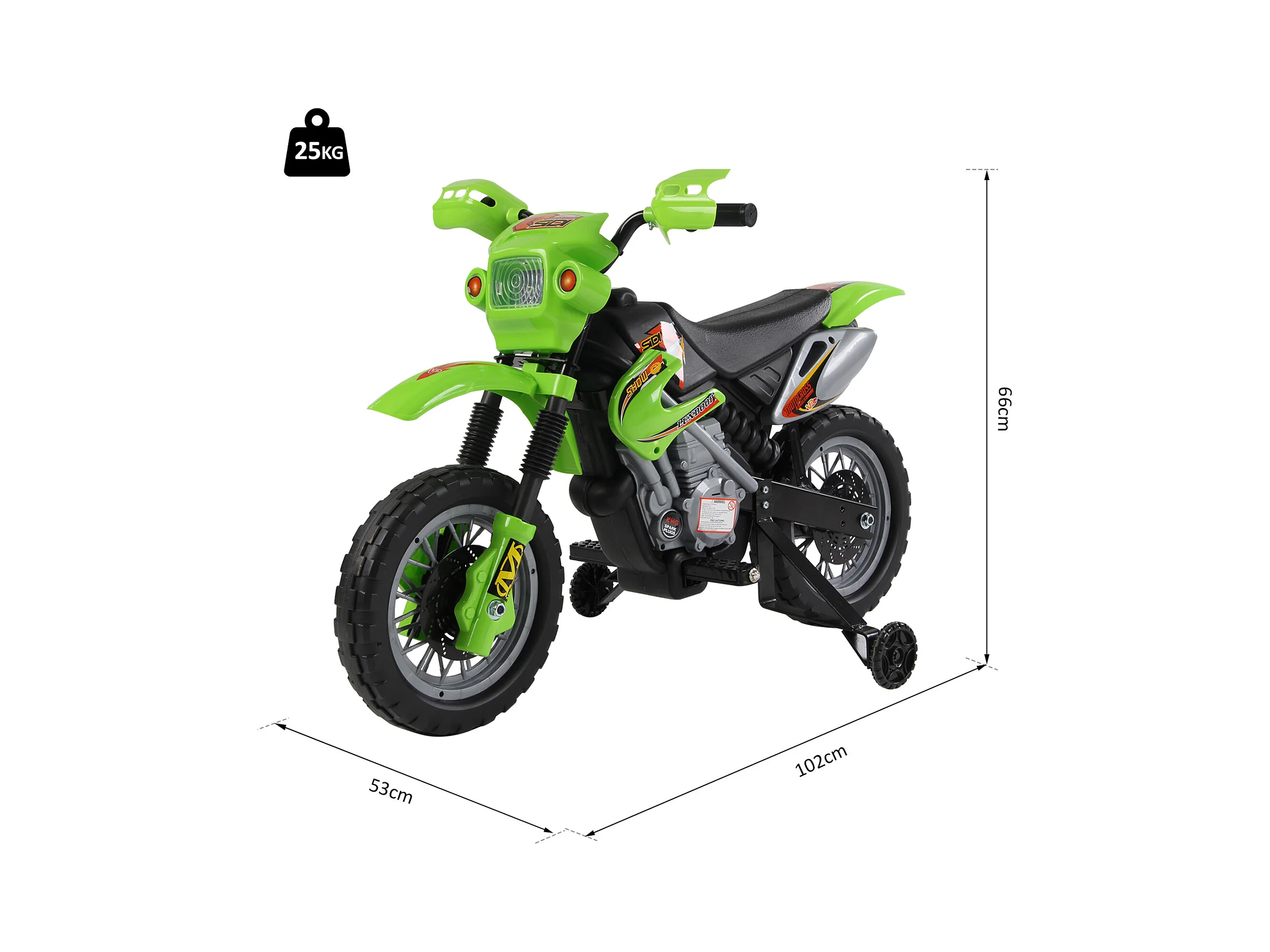 Moto cross électrique pour enfant 3 à 5 ans 12 V 3-8 Km/h avec roulettes latérales amovibles dim. 106,5L x 51,5l x 68H cm vert