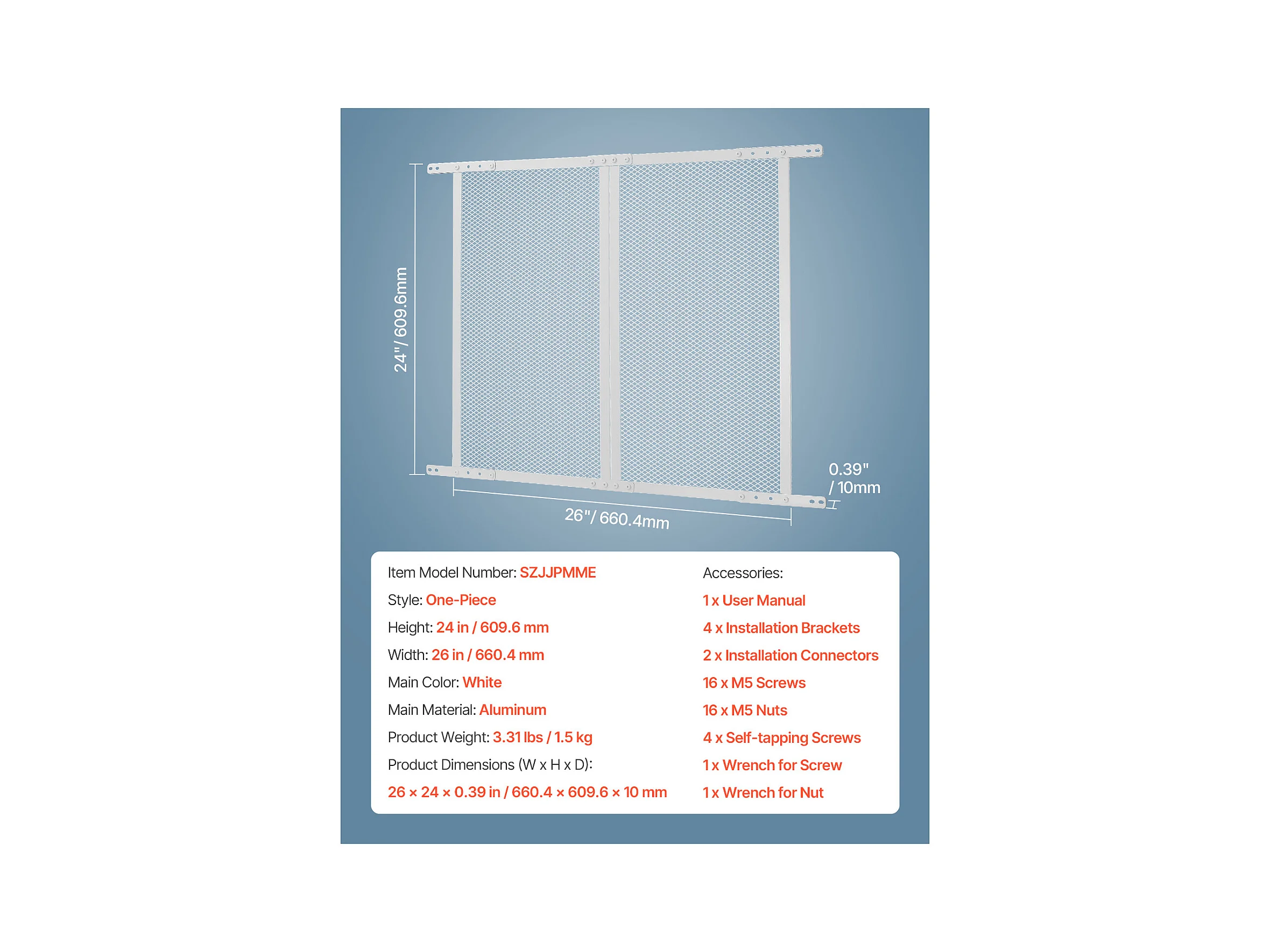 Moustiquaire de Porte SucceBuy de Camping-Car 66.04 x 60.96 cm, Facile à Installer, Filet de Protection pour Animaux en Alliage d'Aluminium Robuste, Blanc