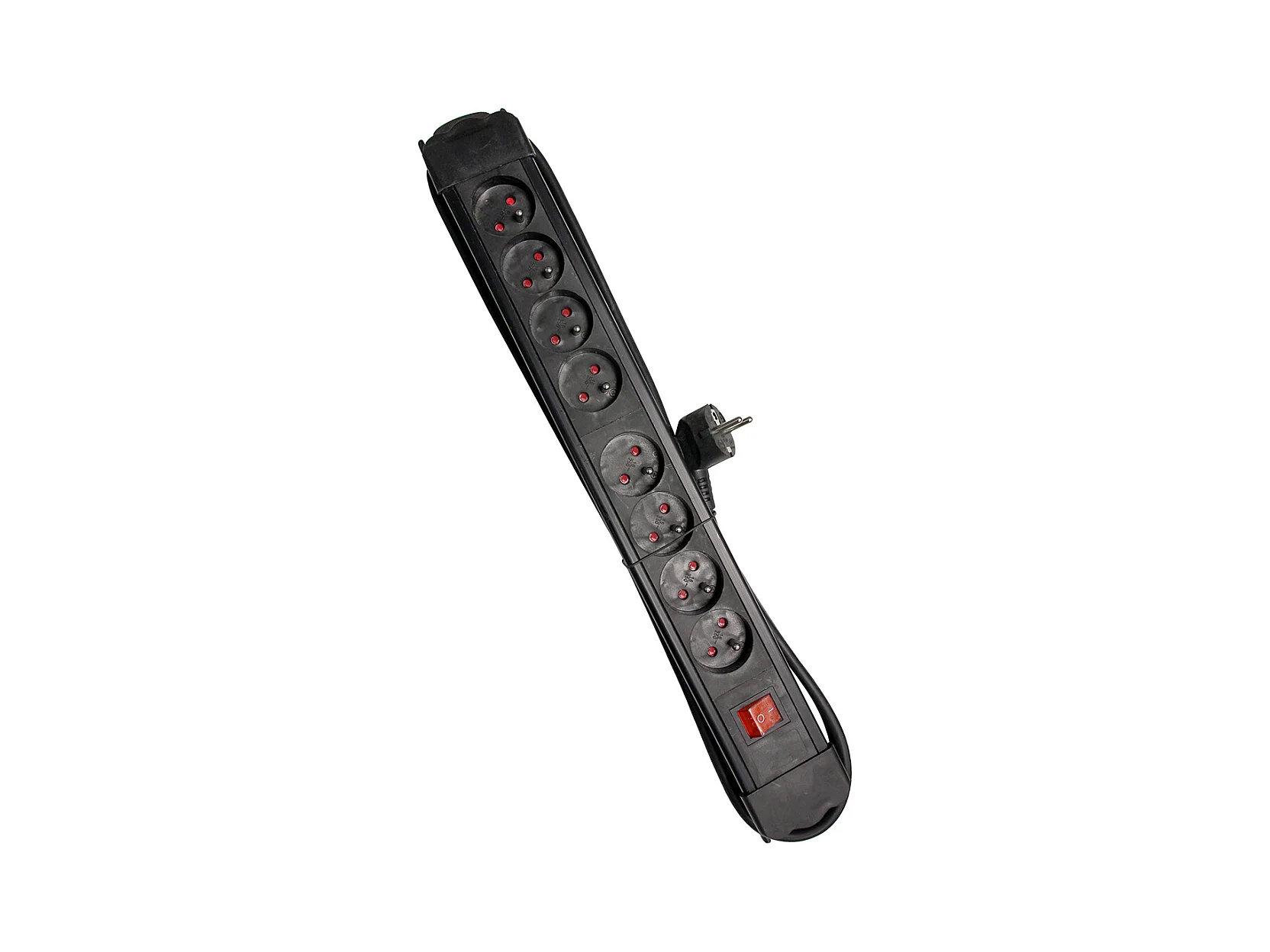Multiprise 8x16A + interrupteur - 1,5 m - Noir - Chacon