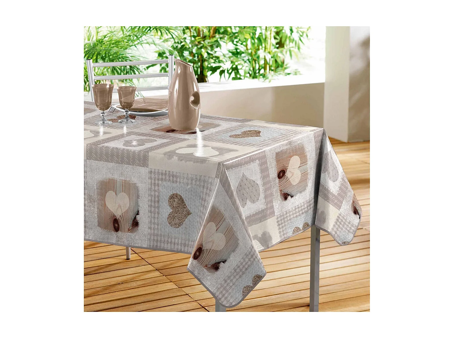 Nappe Toile Cirée "Cosy Coeur" 140x240cm Gris