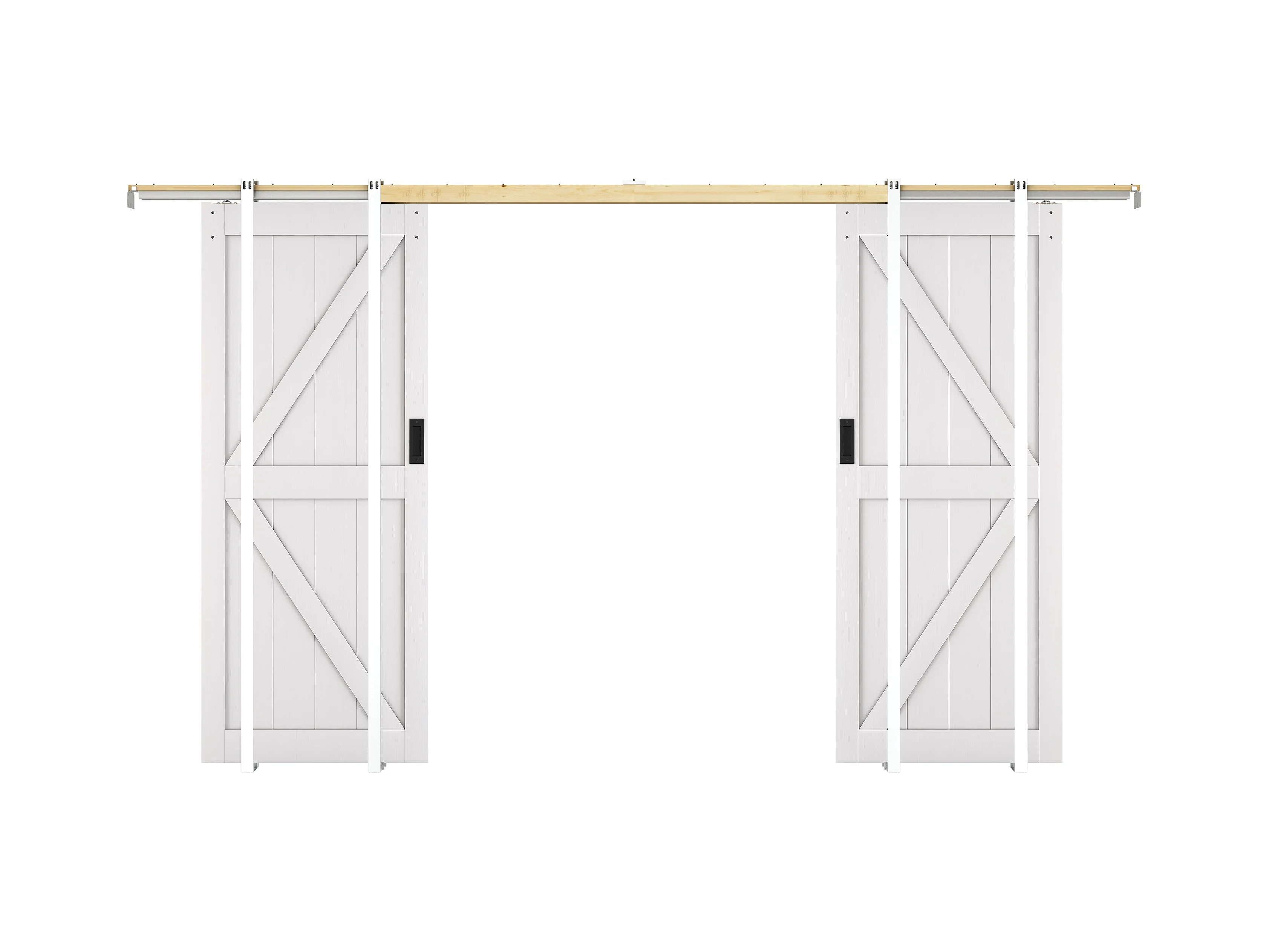 Porte coulissante double avec système à galandage en bois et MDF - blanc - 2 x H205 x 93 cm - NEFARA
