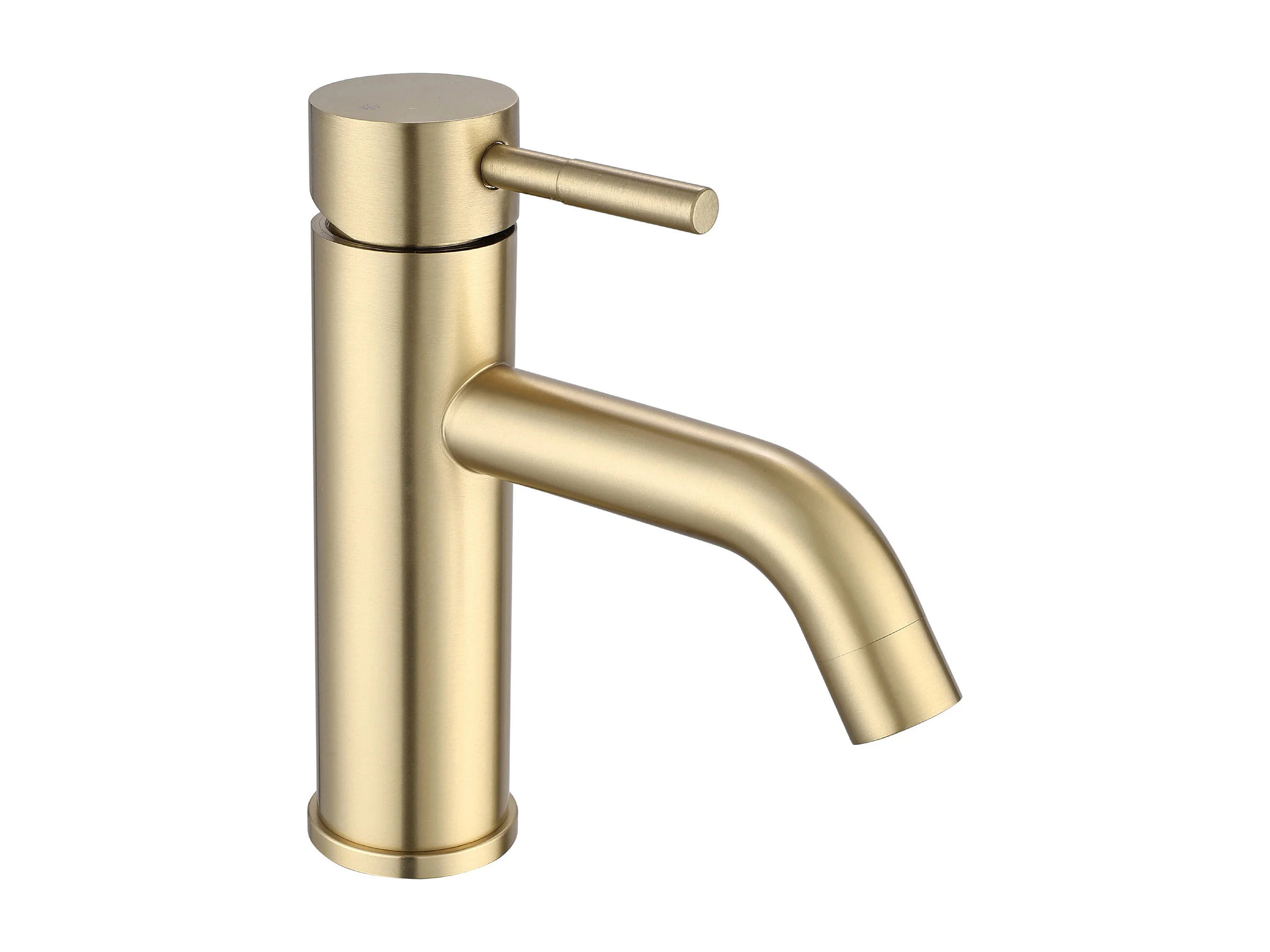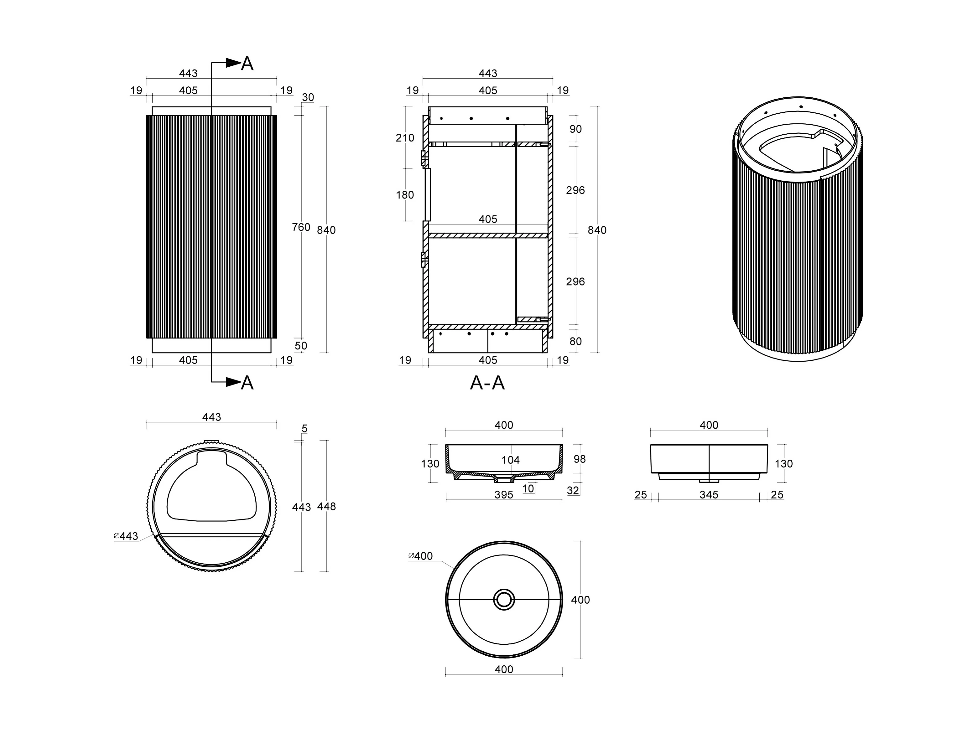 Meuble lave main strié rond à poser en bois de frêne avec vasque à encastrer et robinet - Naturel clair - 45 x 45 x 85 cm - NEFIS