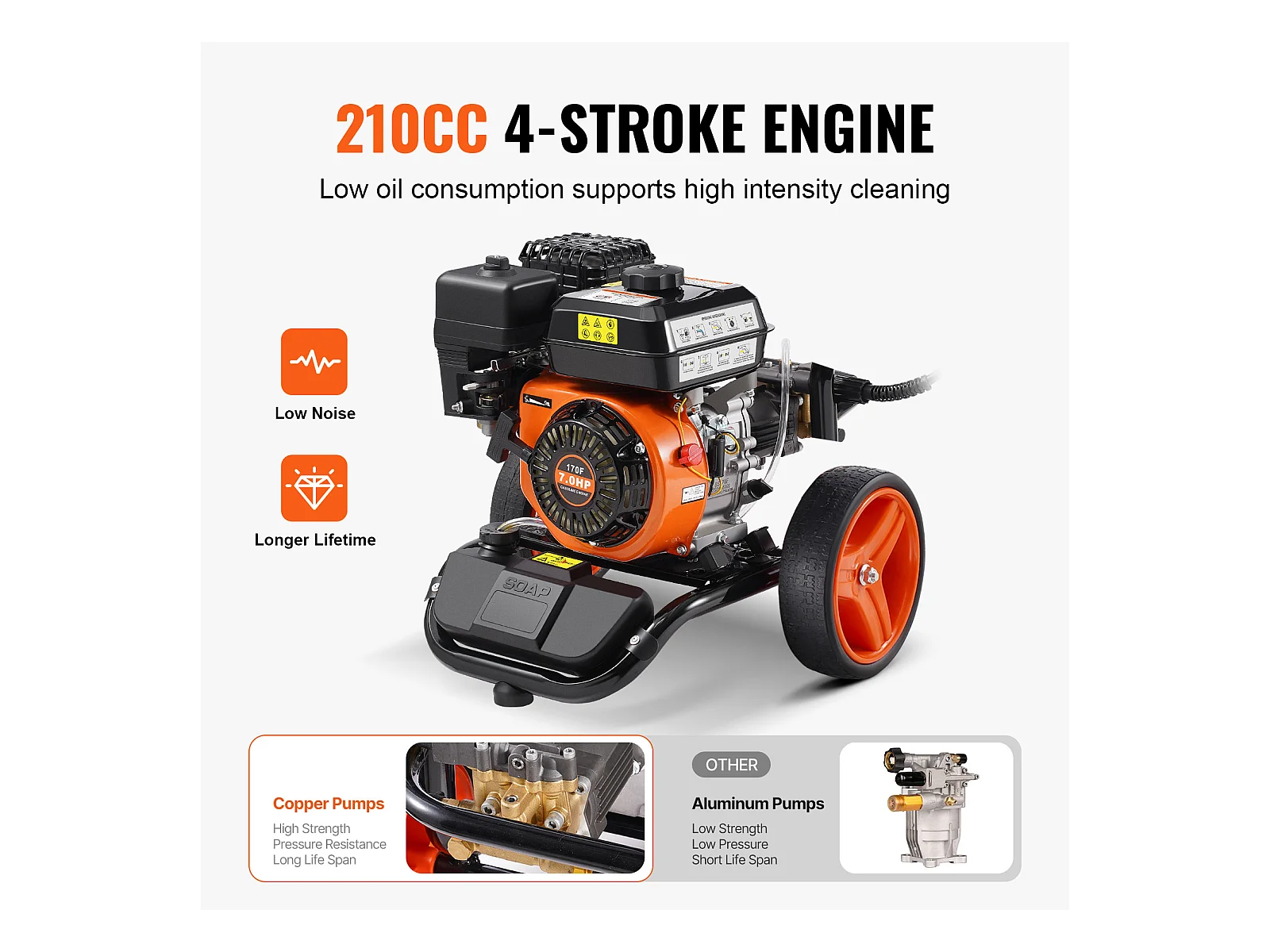 Nettoyeur Haute Pression à Essence SucceBuy, 3950 PSI 10 L/min 2,6 GPM 5 Buses, pour Voitures, Clôtures, Maisons, Vertical