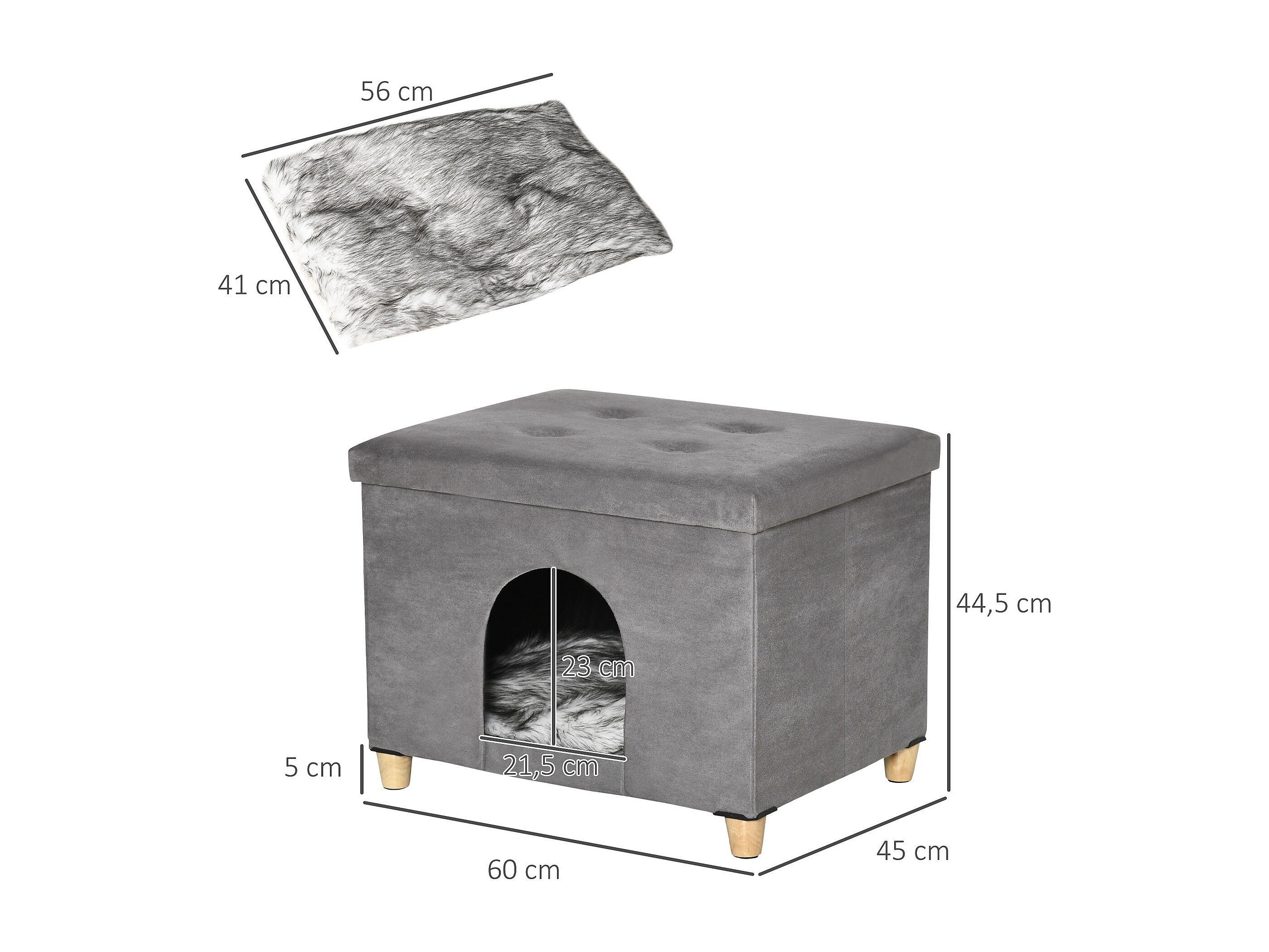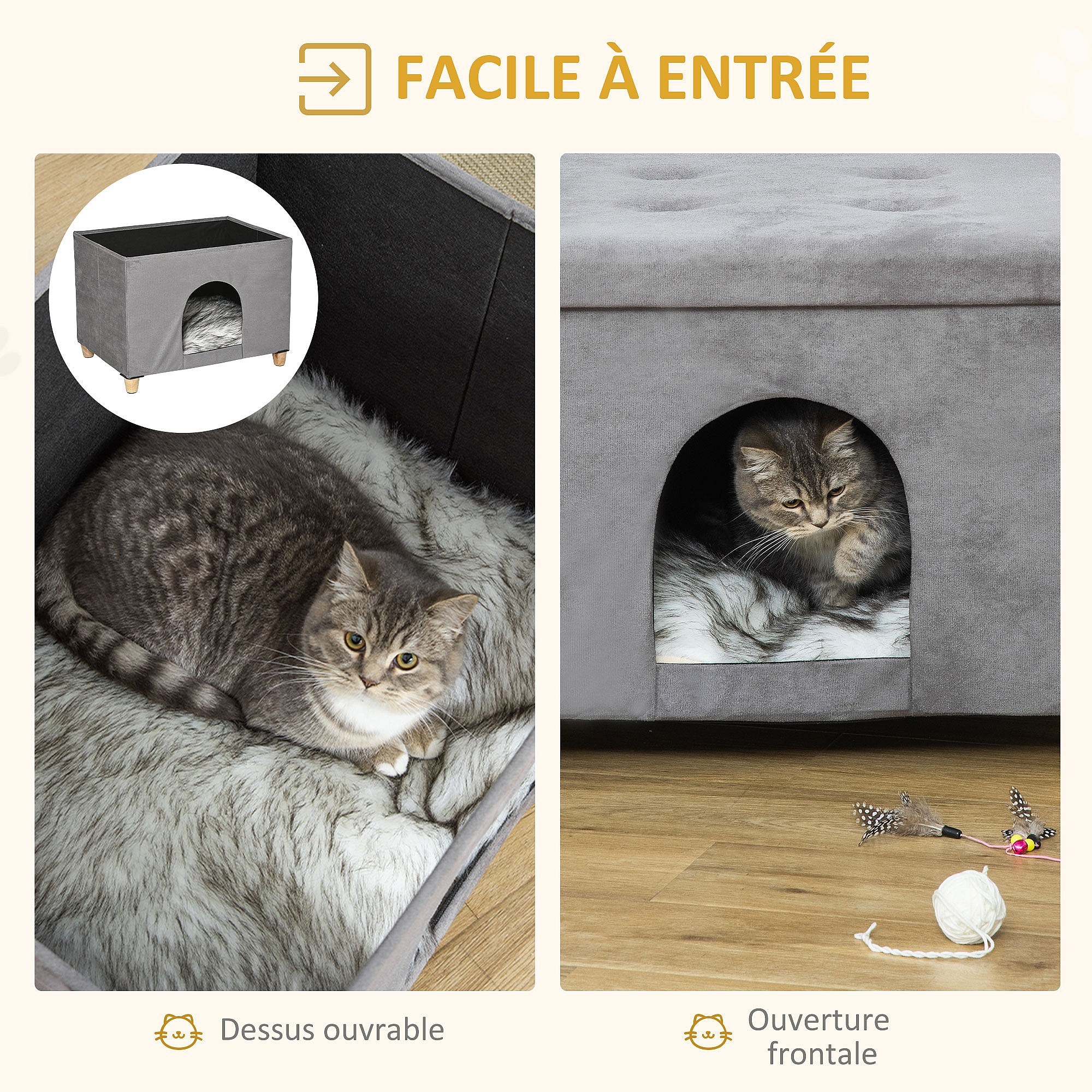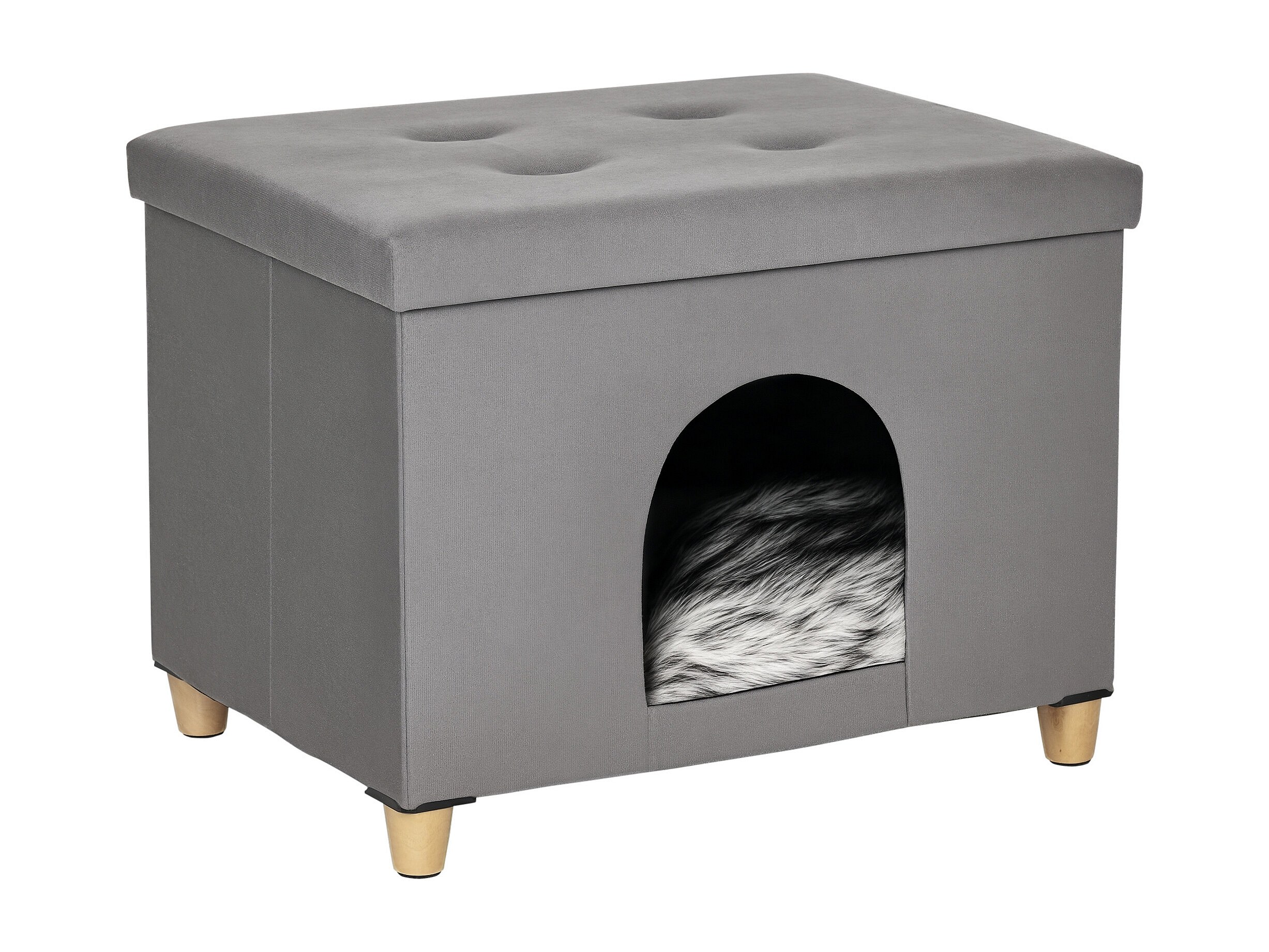 Niche chat maison de chat sur pied repose-pied 2 en 1 - coussin inclus - pliable - MDF peluche suédé gris