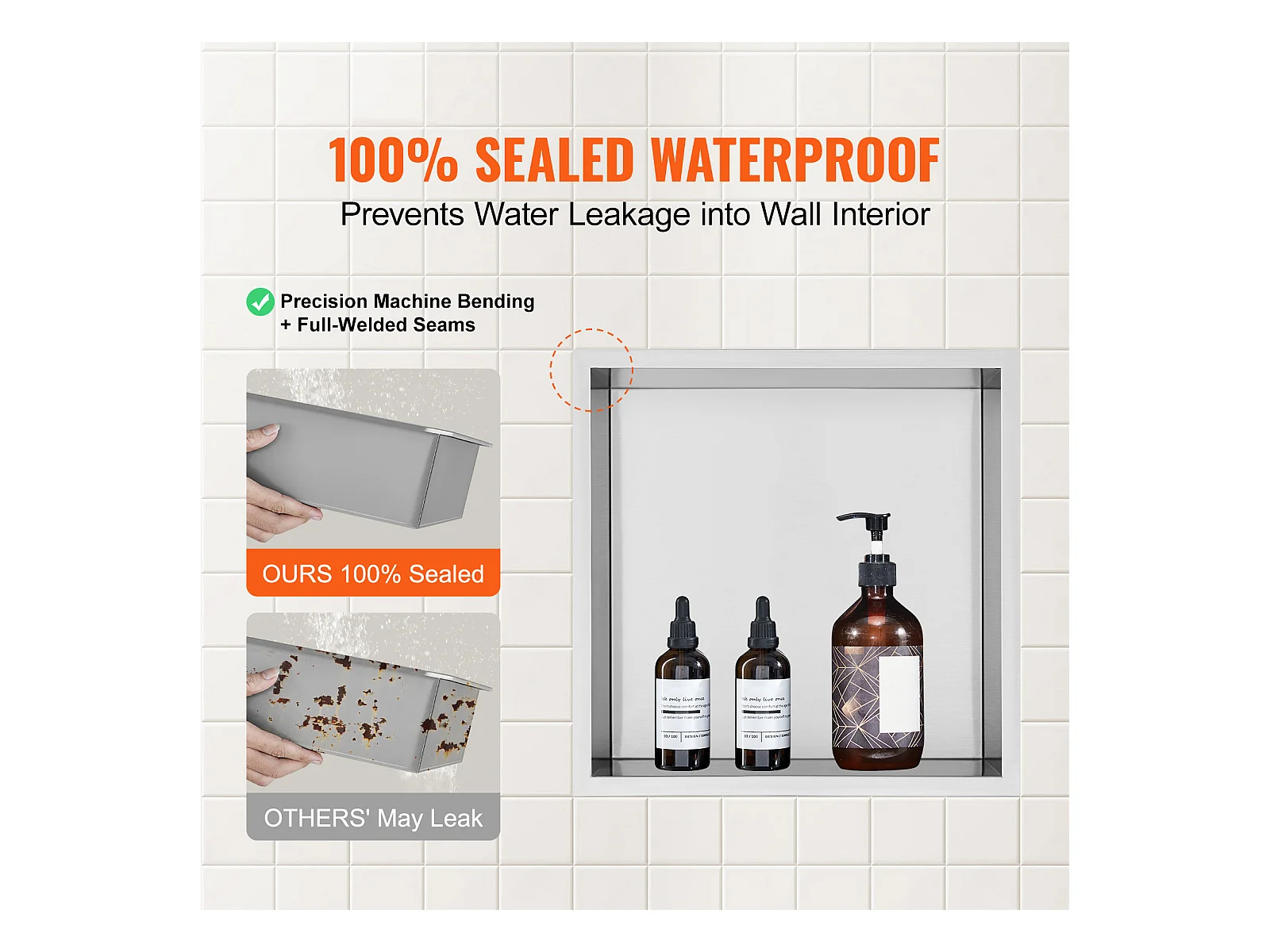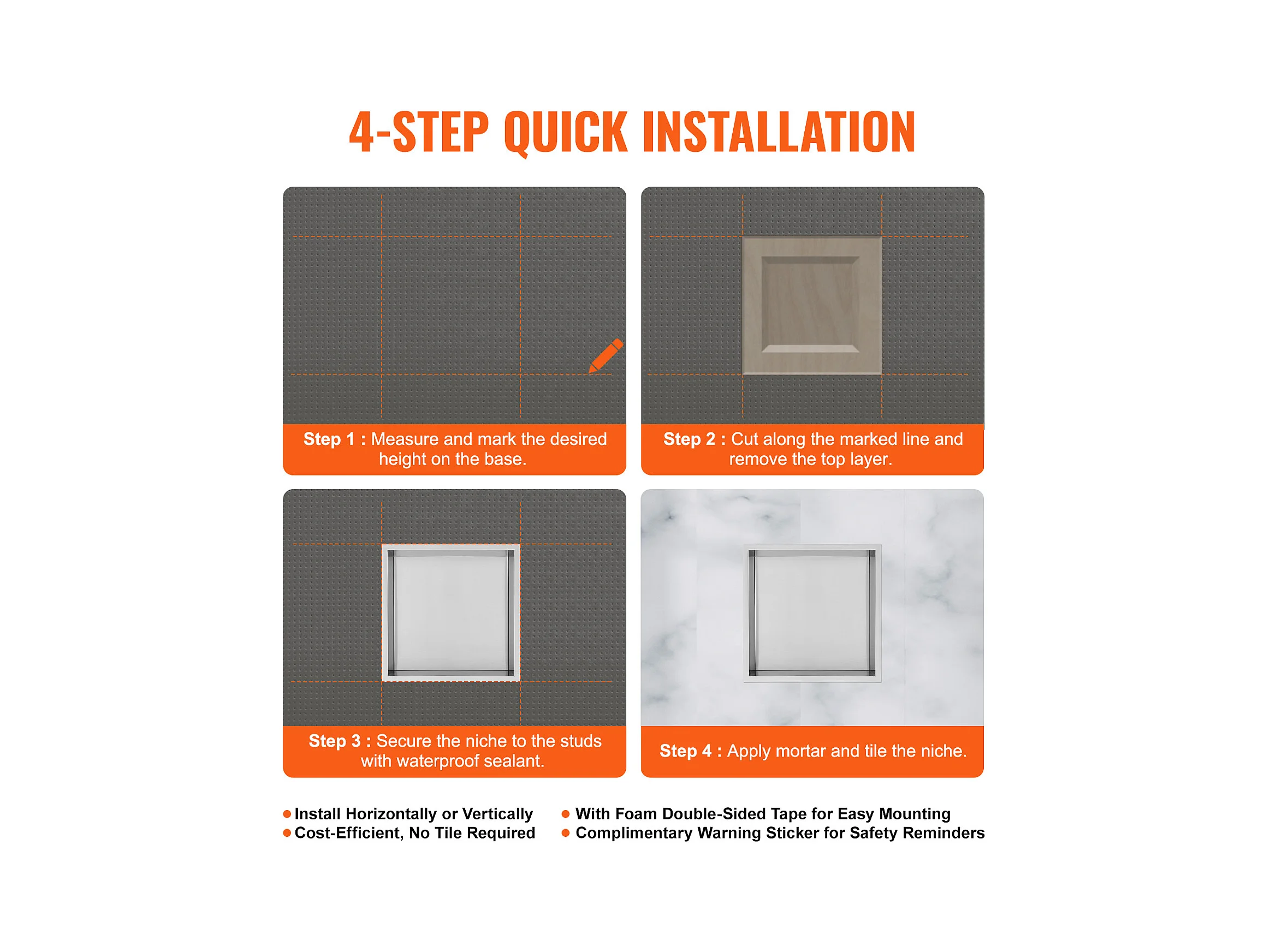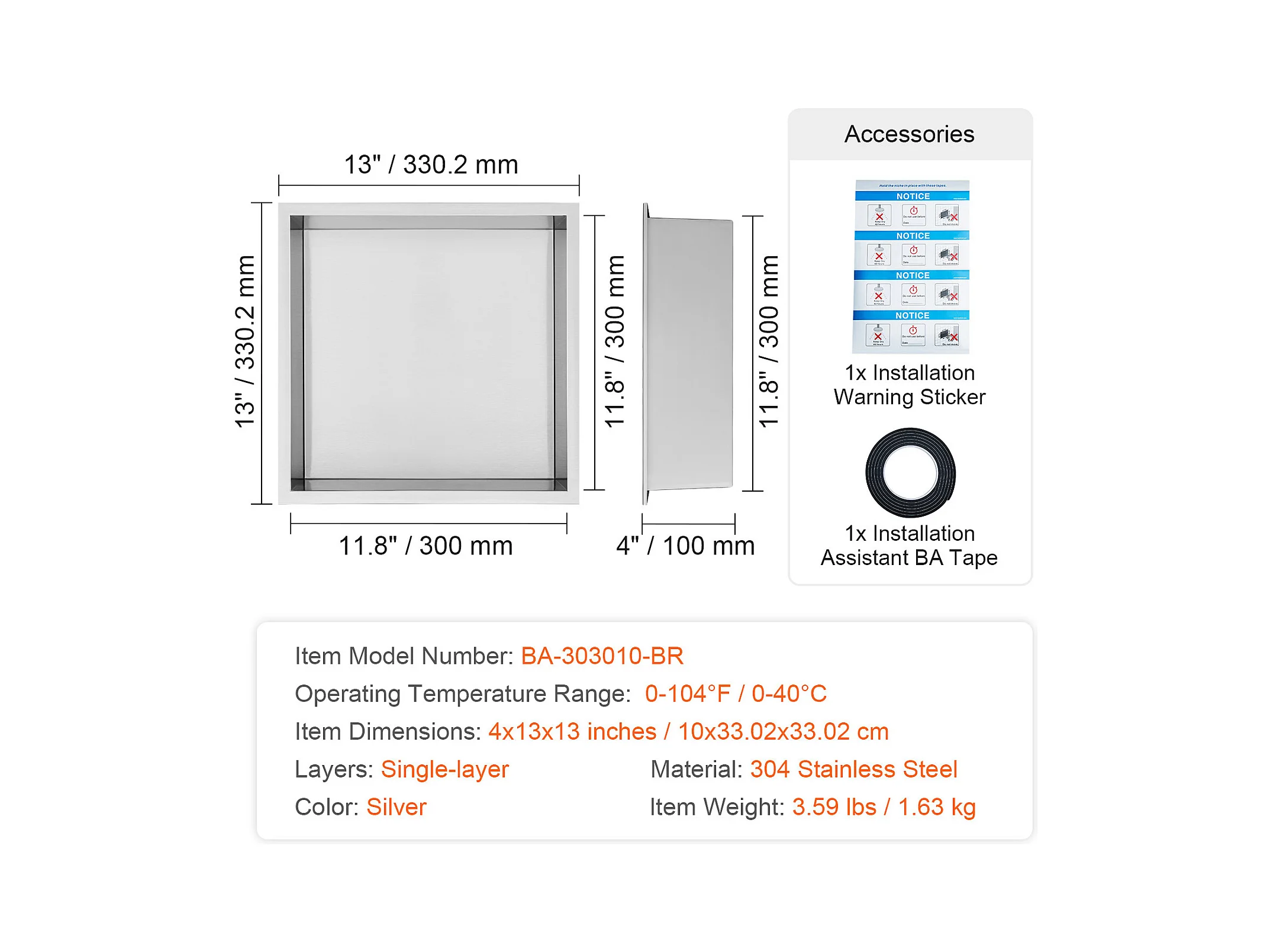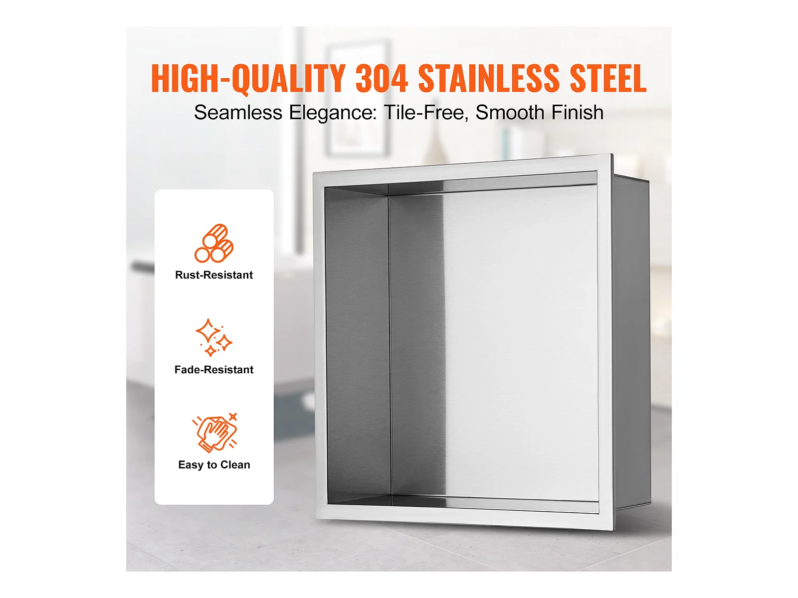 Niche de Douche SucceBuy, en Acier Inoxydable, 33x33 cm, Étagère Double Encastrée dans le Mur